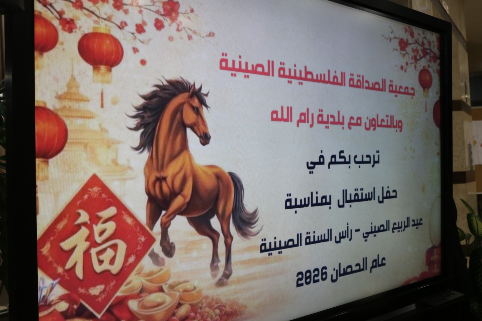 شفا – نظّمت جمعية الصداقة الفلسطينية الصينية، بالتعاون مع بلدية رام الله، مساء أمس، حفل استقبال بمناسبة عيد الربيع الصيني ورأس السنة الصينية 2026، وذلك في بهو دار بلدية رام الله، الذي تزيّن بأجواء العيد الصيني من صور وفوانيس ورموز تقليدية، بحضور رسمي ودبلوماسي وثقافي واسع، وبمشاركة أصدقاء من الجالية الصينية في البلاد.