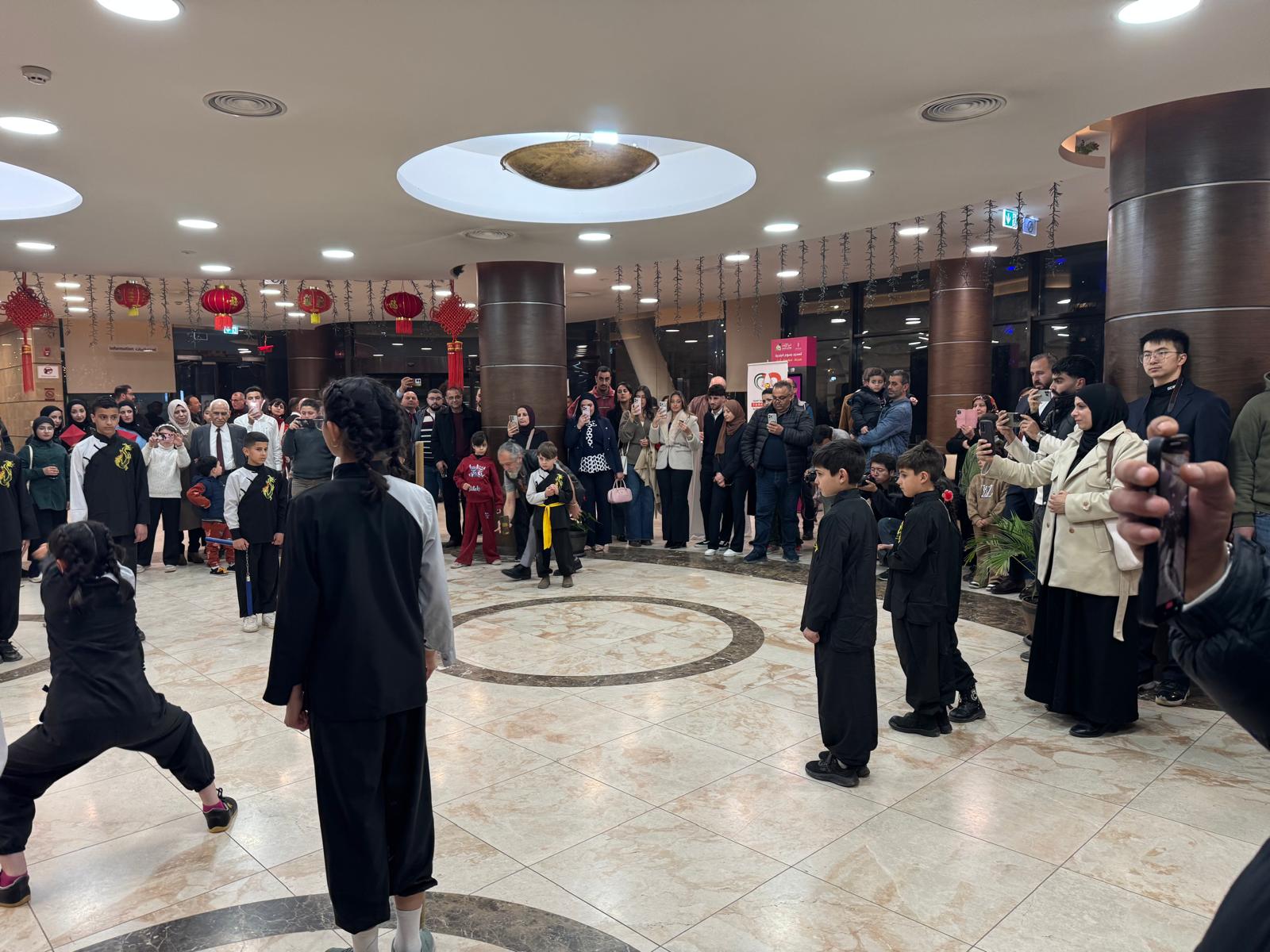 وتخلّل الحفل فقرات فنية وموسيقية عكست التلاقي الثقافي بين البلدين، من بينها عزف موسيقي مشترك على الكمان والقيثارة، وفقرة موسيقية على آلة العود جمعت فنانًا صينيًا من السلك الدبلوماسي مع فنان فلسطيني، إضافة إلى عرض لفنون الكونغ فو الصينية التقليدية، وعرض للدبكة الفلسطينية، إلى جانب إقبالٍ لافت على ركن الخط العربي والصيني، في لوحة ثقافية جامعة عبّرت عن التنوع والانسجام بين الثقافتين.