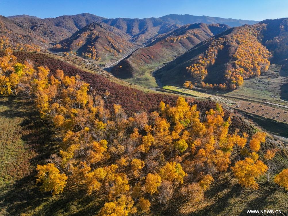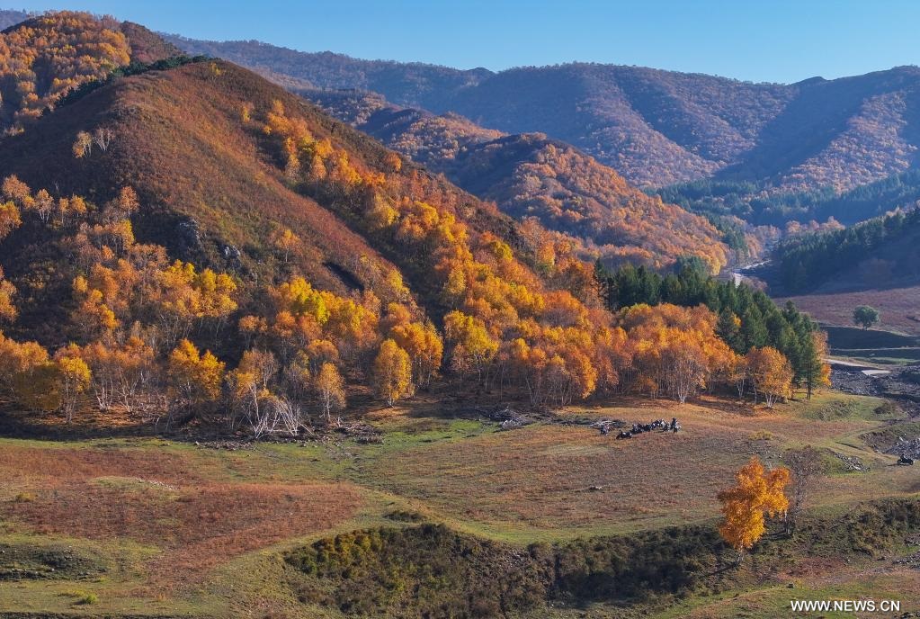 شفا - هوهيهوت - 3 أكتوبر 2025 (شينخوا) في الصورة الملتقطة يوم 2 أكتوبر 2025، مناظر خريفية في محمية داتشينغشان الطبيعية الوطنية بمنطقة منغوليا الداخلية ذاتية الحكم في شمالي الصين.