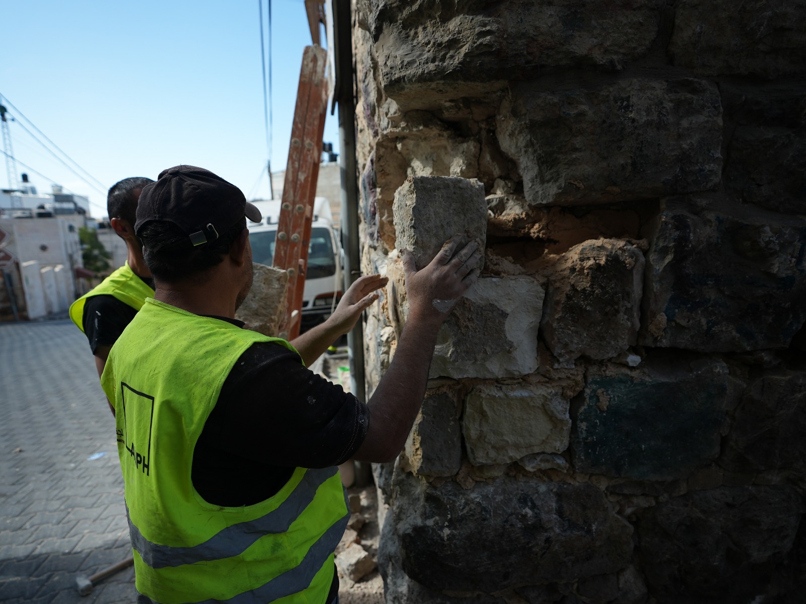 لجنة إعمار الخليل تٌجري أعمال ترميم الواجهات وتدعيم المباني التاريخية في البلدة القديمة