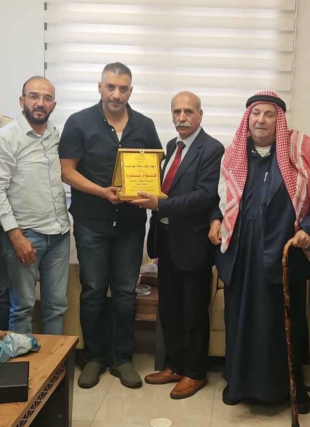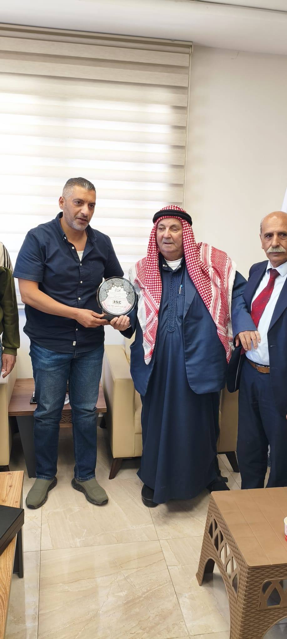 وفي نهاية اللقاء قدم عميد العائلة الحاج ابو اكرم درعا لمدير الجهاز وكذلك القيادي المناضل عيسى ابومياله متمنين التوفيق والتقدم للأخ العقيد فؤاد بدره ” ابو حسني” .