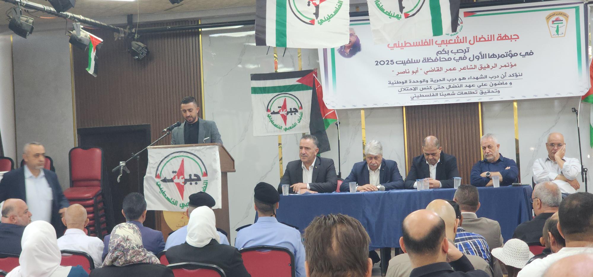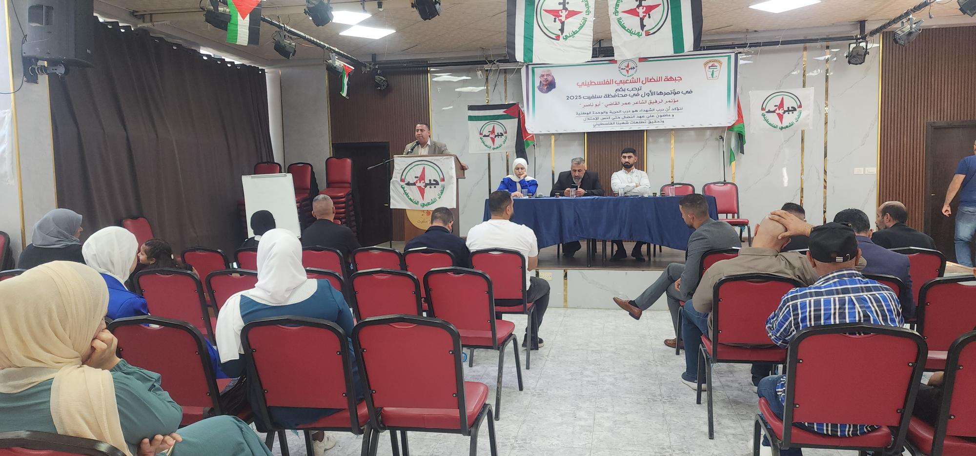 خلال مؤتمر فرع الجبهة لمحافظة سلفيت ، د. مجدلاني : سلفيت الخندق الاول في مواجهة الاستيطان وخزان مائي كبير يحاول الاحتلال السيطرة عليه