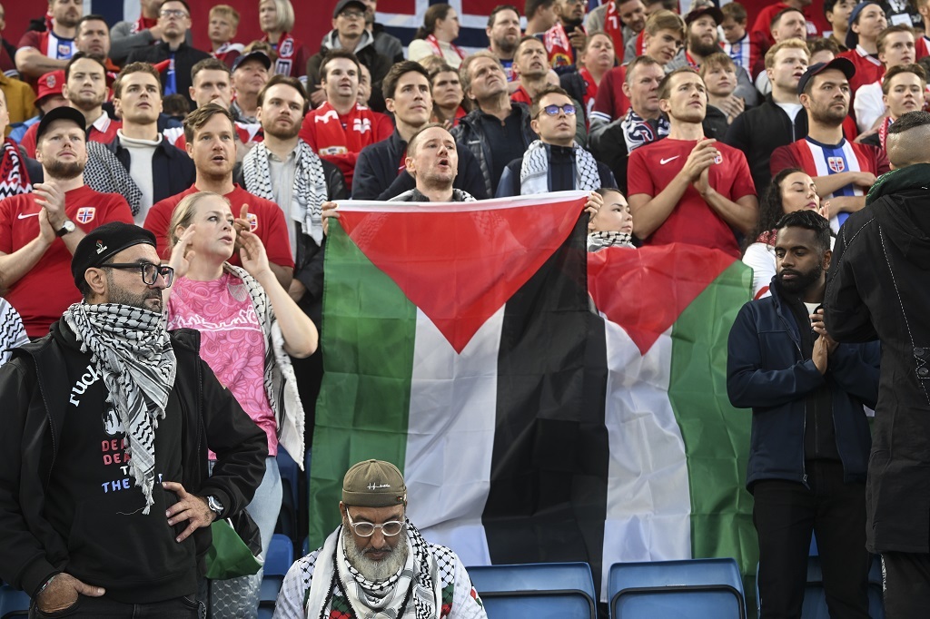 شفا – شارك الآلاف، يوم السبت، في تظاهرة مؤيدة لفلسطين، خارج ملعب “أوليفال” في العاصمة النرويجية أوسلو، قبل المواجهة التي جمعت منتخب النرويج مع نظيره الإسرائيلي في التصفيات الأوروبية المؤهلة لكأس العالم 2026.