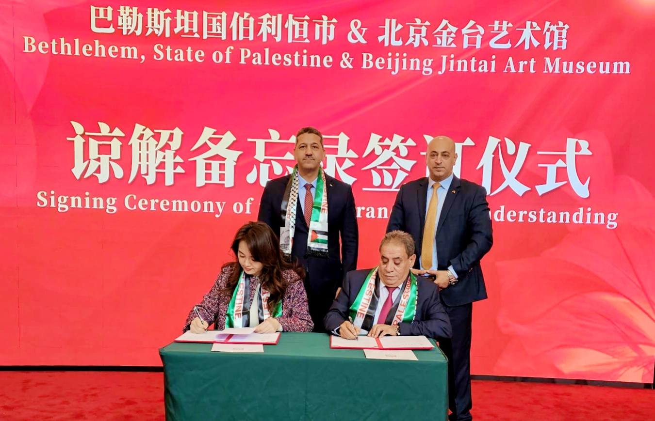 شفا – وقع محافظ بيت لحم محمد طه أبو عليا، ومديرة متحف بكين جينتاي للفنون، السيدة لو شياو، مذكرة تفاهم تهدف إلى تعزيز التعاون الثقافي والفني بين محافظة بيت لحم وبكين، وذلك في إطار دعم وتفعيل المعمل التنموي بالمحافظة وتعميق العلاقات الثقافية بين الشعبين الفلسطيني والصيني.