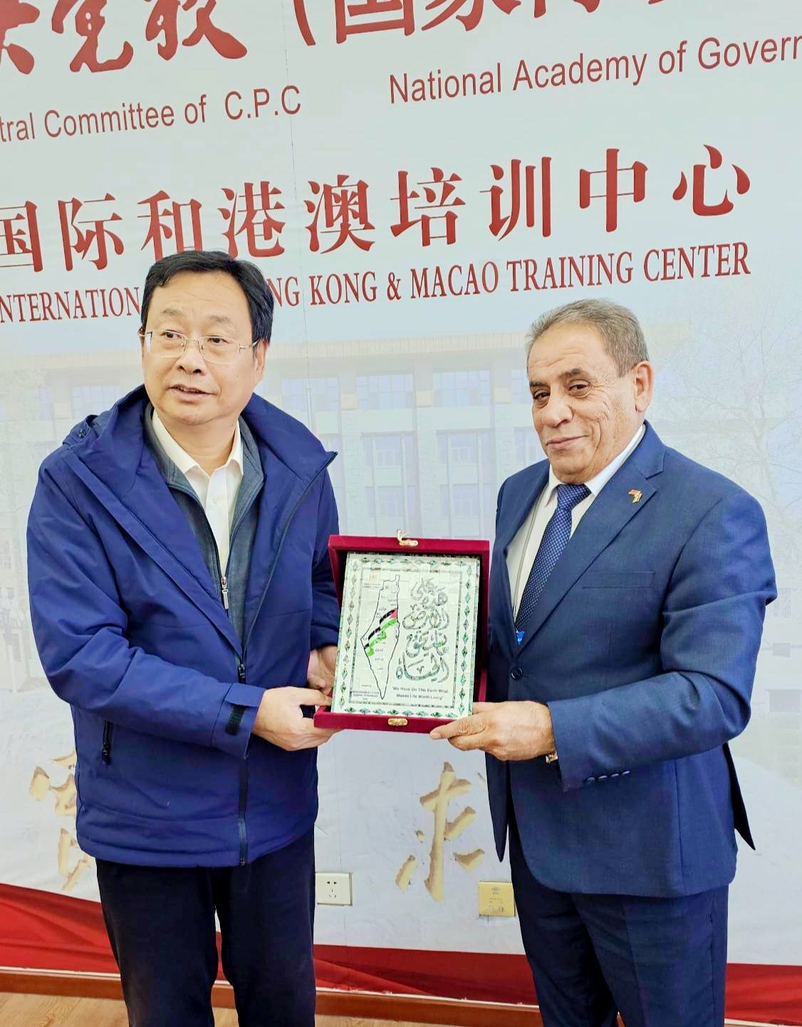 شفا – التقى عطوفة محافظ بيت لحم محمد أبو عليا والذي يزور الصين ضمن برنامج تدريبي ، اليوم في مقر الأكاديمية الوطنية الصينية للإدارة، بالبروفيسور شيه يوتونغ، المدير العام لمركز التدريب الدولي وهونغ كونغ وماكاو في الأكاديمية الوطنية الصينية للحكم، وذلك بحضور الوفد الفلسطيني المشارك في البرنامج التدريبي الخاص بـ الحوكمة والعمل الحكومي، إلى جانب عدد من ممثلي الدول النامية المشاركة.