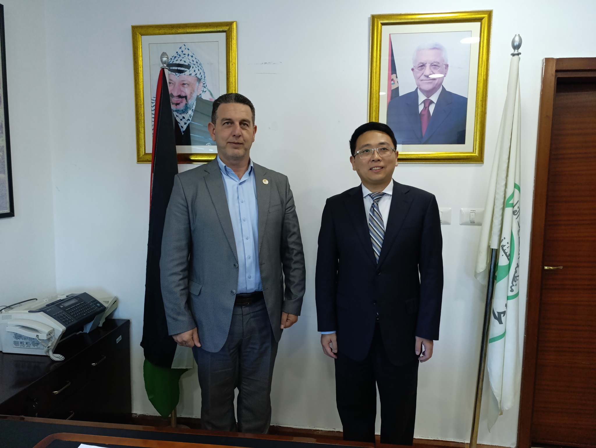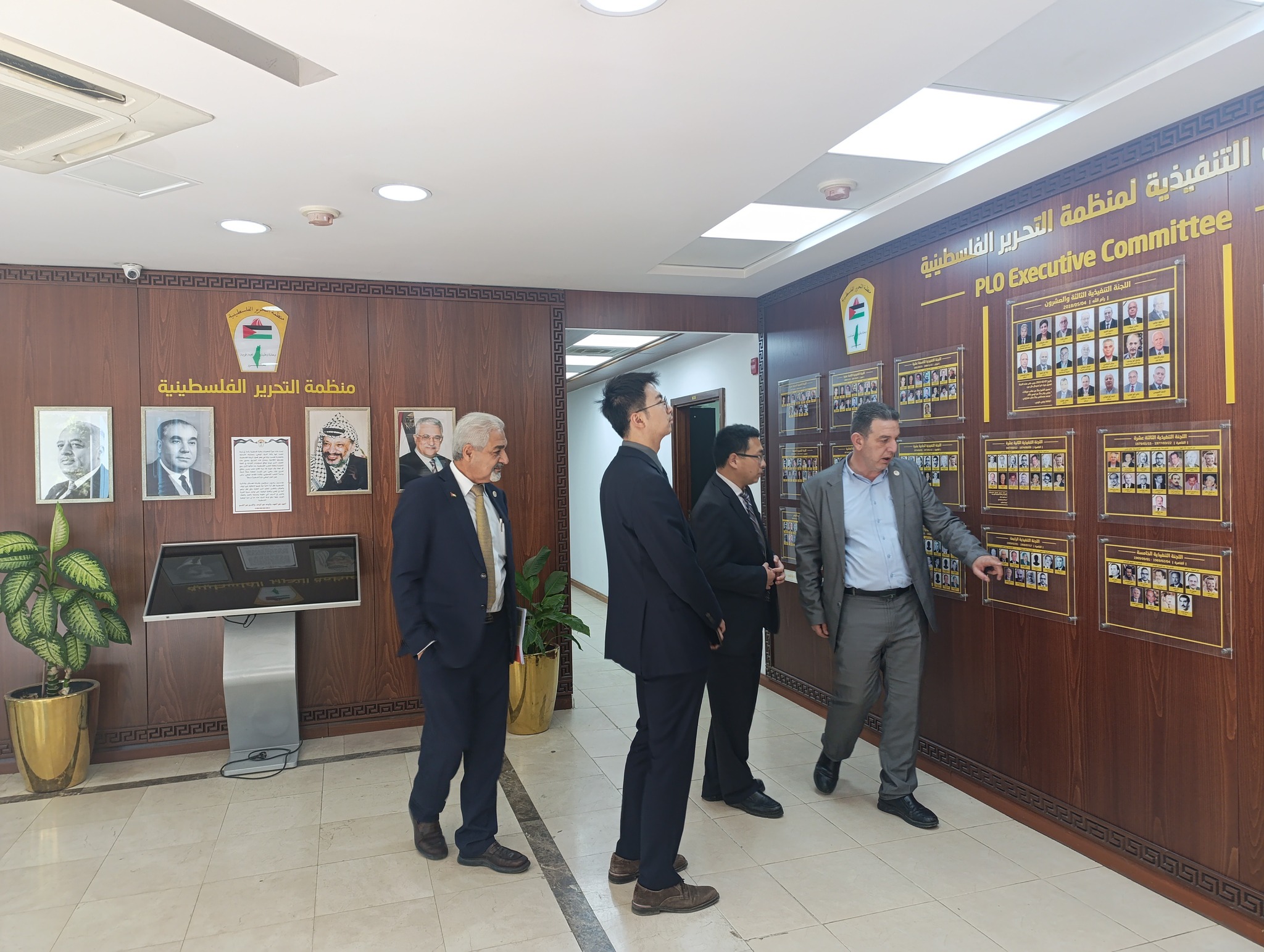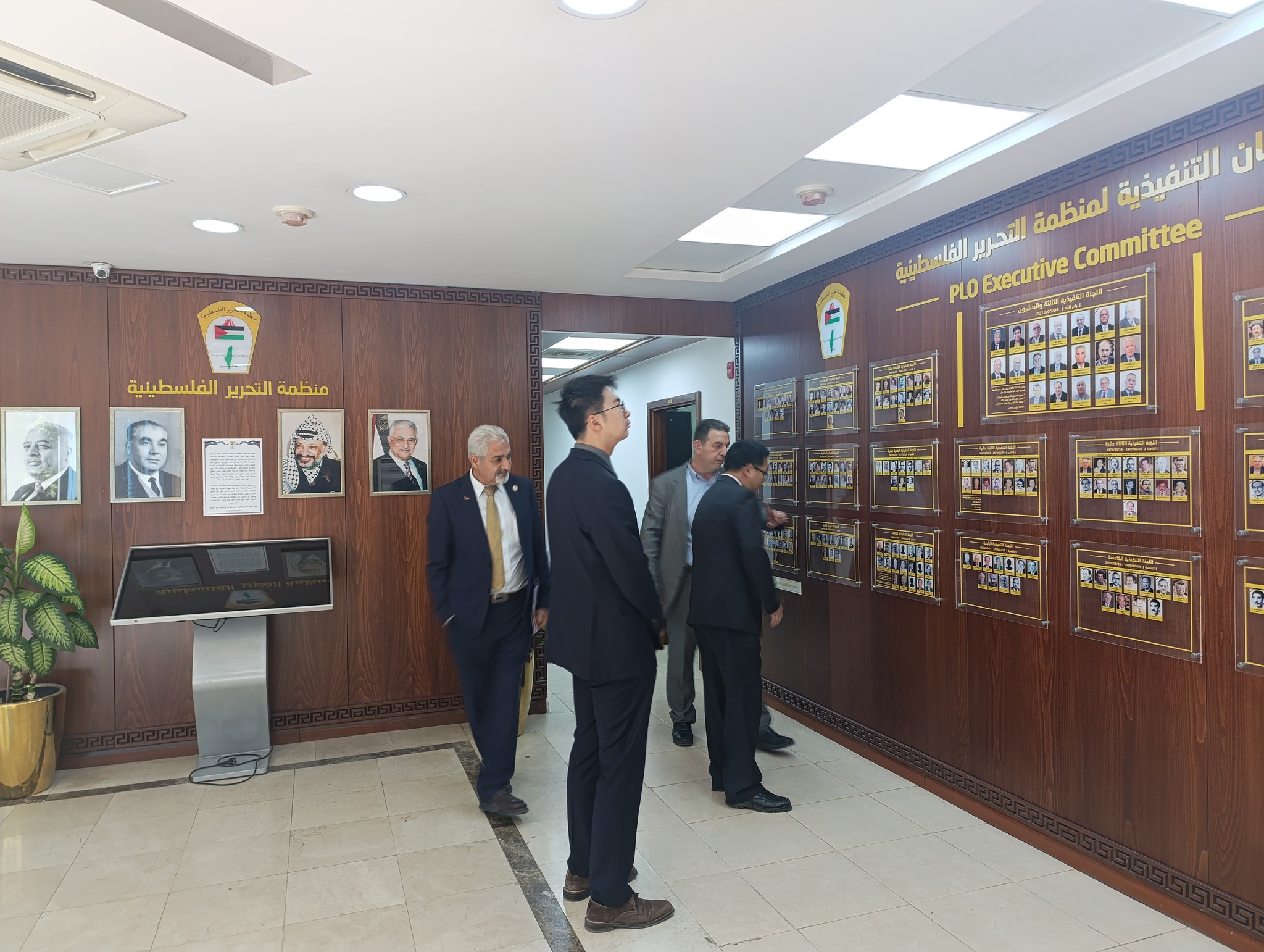 وكان في استقبال الوفد الصيني السيد علي السنتريسي و السيد قاسم عواد وكيل دائرة حقوق الانسان والمجتمع المدني في منظمة التحرير الفلسطينية.