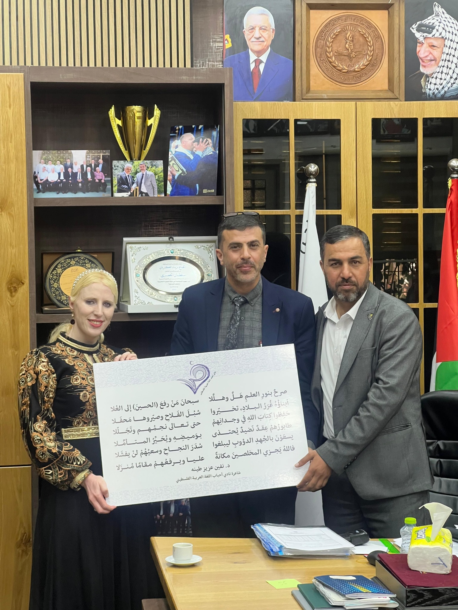 وضمّ الوفد كلًّا من: د. نيفين طينة، أ. ماجدة النتشة، أ. هناء كرجة، أ. أكرم سليمية، د. ضرار أبو سنينة، م. عبادة سلطان، الكاتب عبد السلام سدر، أ. معتز مجاهد، وأ. نادية الحداد.