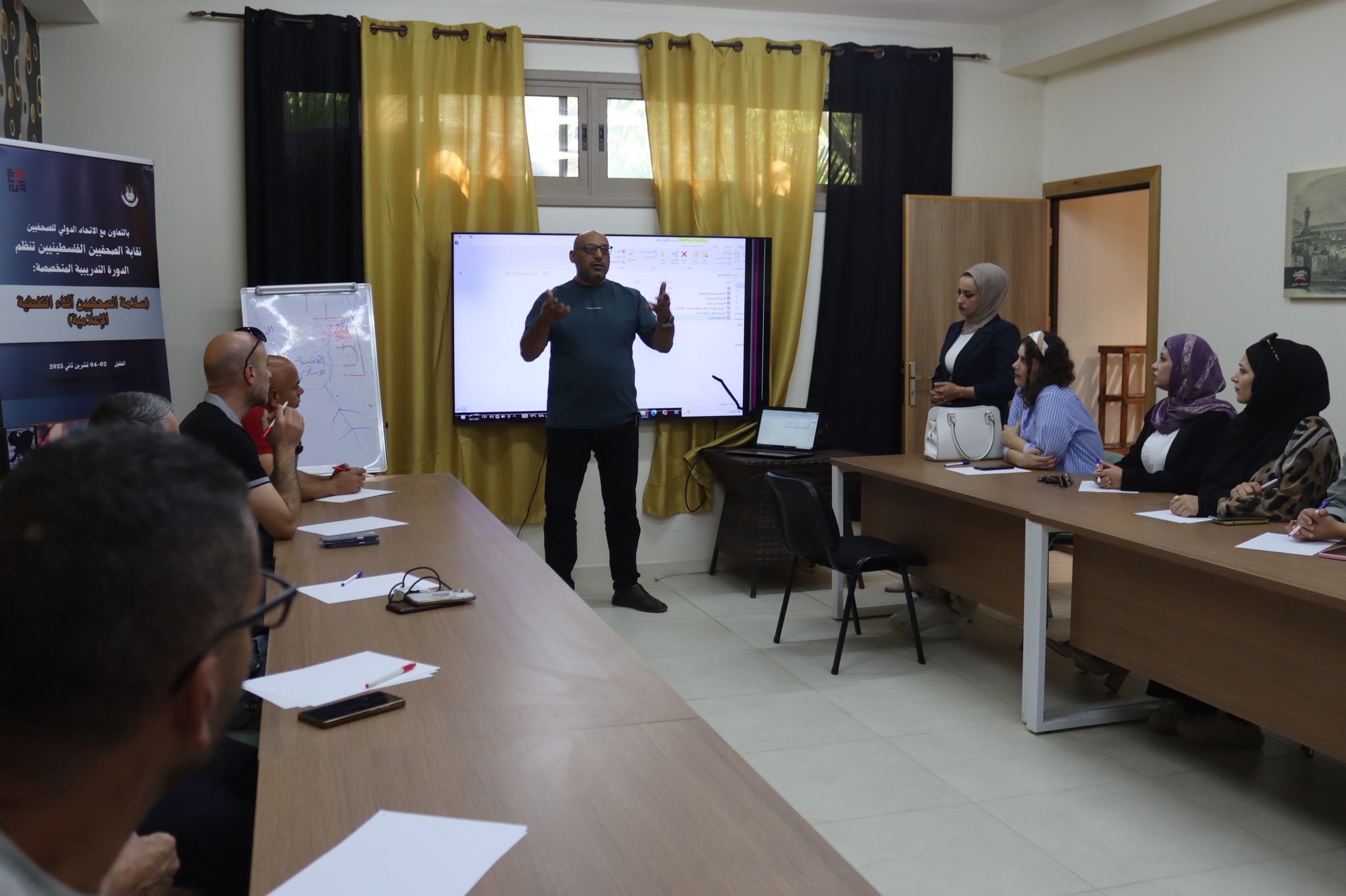 وأكد أن هذه الدورة تندرج في إطار الشراكة مع الاتحاد الدولي للصحفيين لتنمية قدرات الصحفيين الفلسطينيين في مجال السلامة المهنية، ضمن خطة متكاملة في محافظات الضفة، منوها إلى أهمية مضامين هذه الدورة لما لها علاقة بحياة وسلامة الصحفيين خاصة في ظل استهداف الاحتلال الدائم لهم، وما ارتكبه الاحتلال من جرائم بشعة بحقهم والإبادة الإعلامية التي ارتكبها الاحتلال في قطاع غزة وارتقى جراءها 254 صحفيا وعاملا في قطاع الاعلام منذ تشرين الأول/ أكتوبر 2023.
