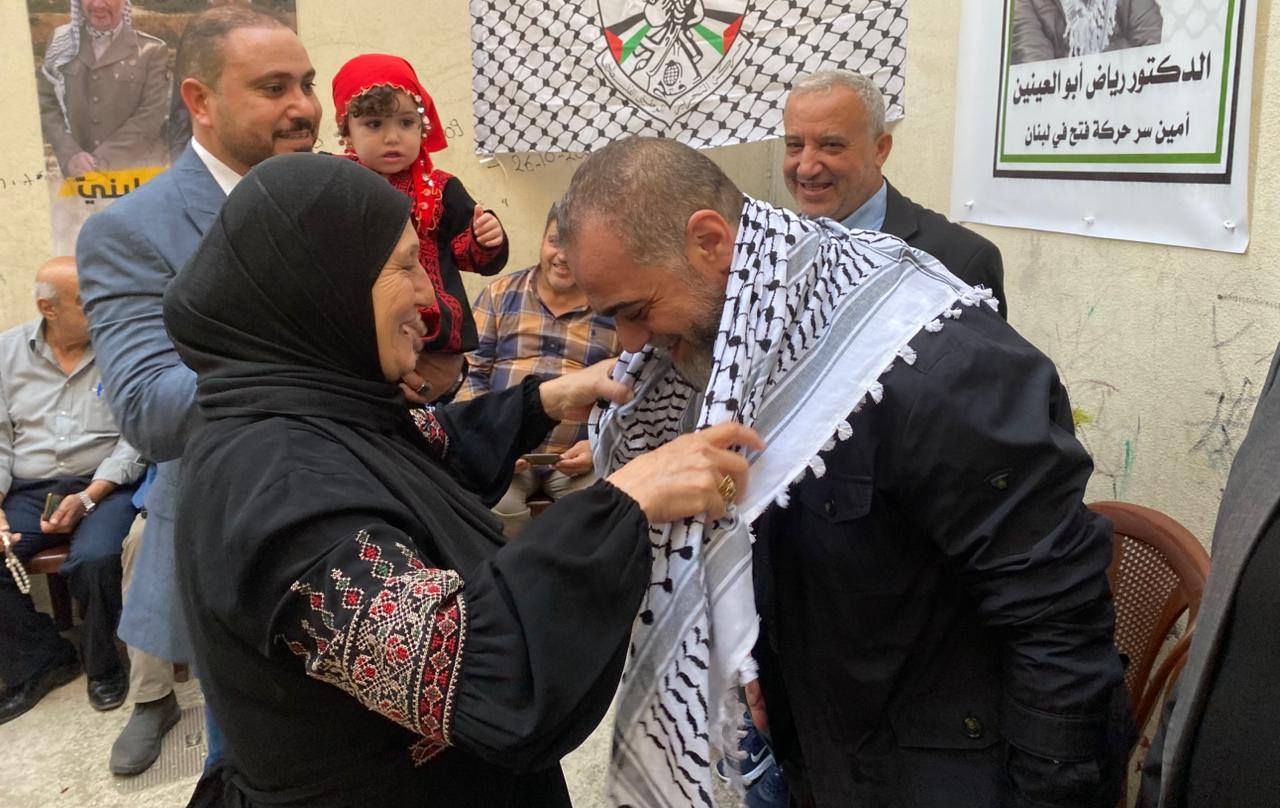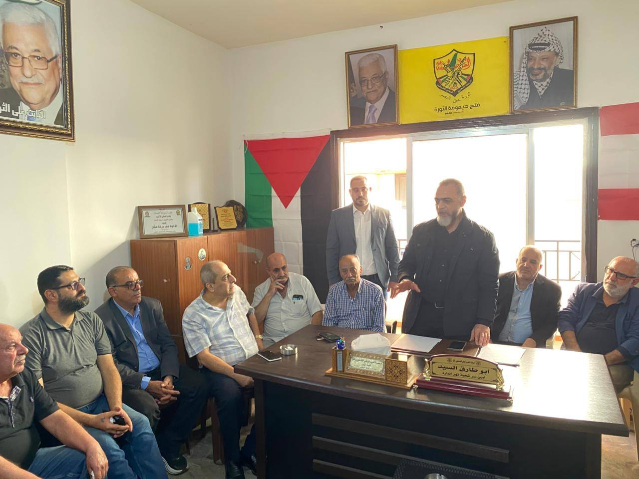 كما قدّم واجب العزاء للأخت انتصار أبو عمارة، رئيسة الديوان الرئاسي الفلسطيني، بوفاة والدها الحاج وليد الحديري (أبو علي)، ناقلاً تعازي قيادة الحركة في لبنان.