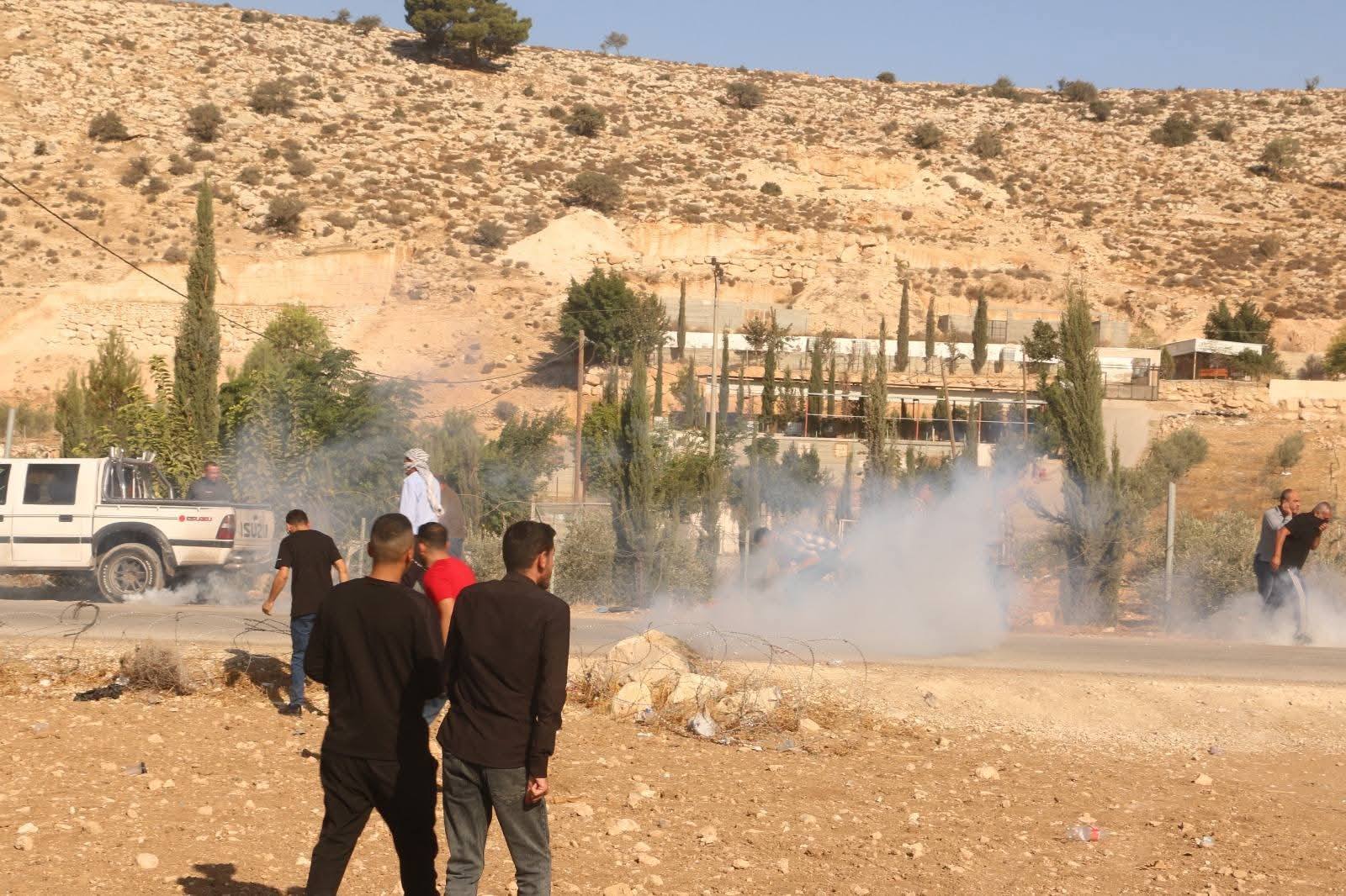 وخلال الاقتحام، اطلقت قوات الاحتلال قنابل الغاز السام والصوت بكثافة تجاه المشاركين، مما أدى إلى لاصابة العشرات بحالات اختناق جراء استنشاق الغاز.