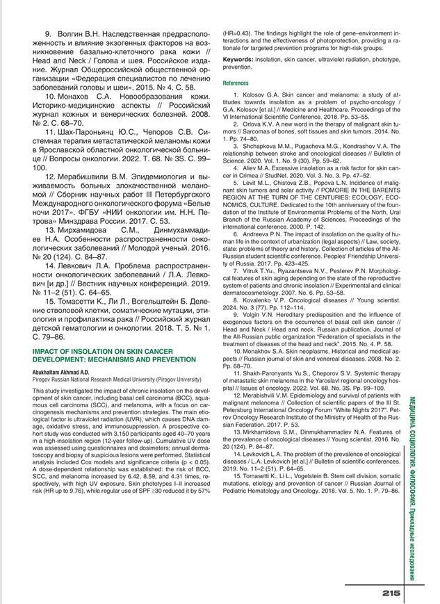 شفا – نشرت مجلة أبحاث طبية تابعة لوزارة الصحة الروسية بحثاُ للطبيب الفلسطيني أحمد أبو حلتم ، وكان البحث العلمي بعنوان “تحليل العلاقة بين أشعه الشمس و تطور سرطان الجلد” ( الميلانوما ) .