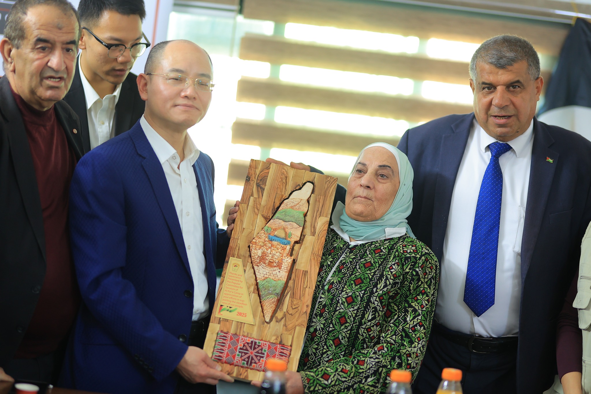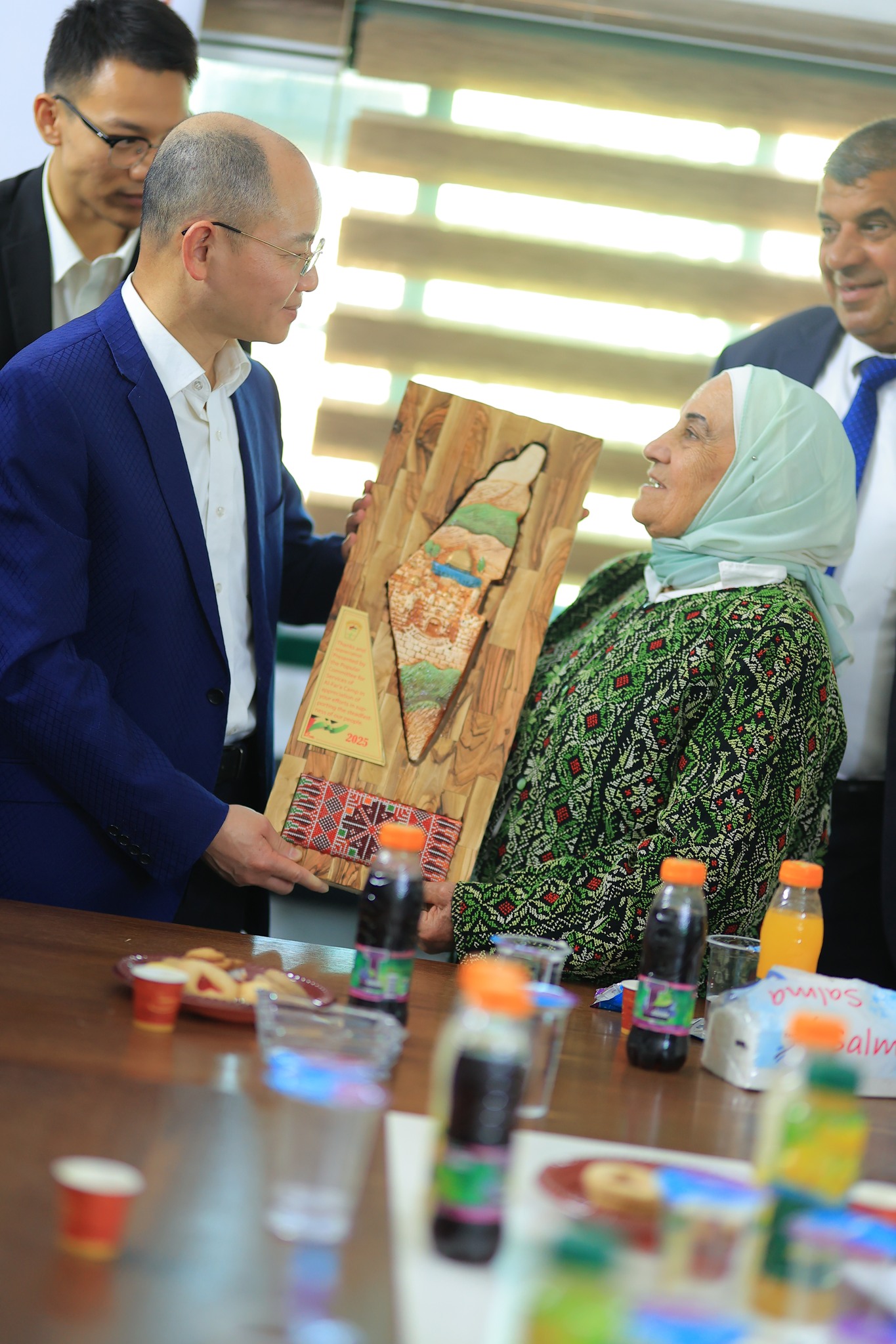 وقدمت السيدة ليلى سعيد هدية رمزية للسفير الصيني السيد تسنغ جيشين وهي عبارة عن خارطة لفلسطين، حملت في تفاصيلها معاني الوفاء والتاريخ والجذور.