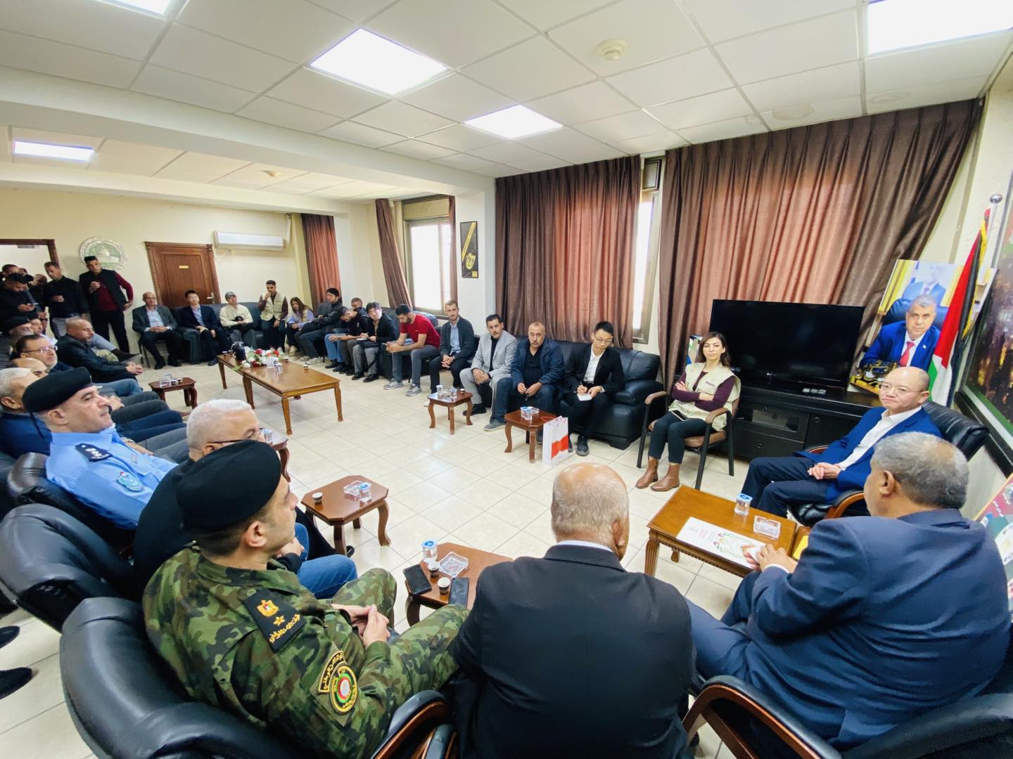 وخلال الجولة الميدانية في أزقة مخيم الفارعة ، عاين السفير الصيني تسنغ جيشين عن قرب الواقع الصعب والحياة الصعبة : شوارع ضيقة، بيوت متلاصقة، بنية تحتية منهكة، مجاري مكشوفة، وكوابل كهرباء غير آمنة.