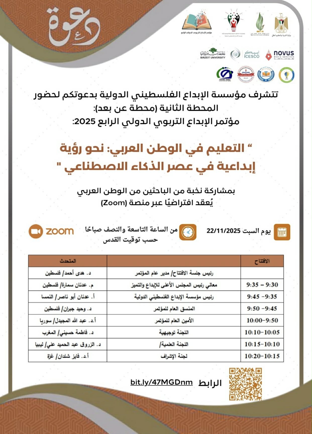 “التَّعْلِيمُ فِي الوَطَنِ العَرَبِيِّ: نَحْوَ رُؤْيَةٍ إِبْدَاعِيَّةٍ فِي عَصْرِ الذَّكَاءِ الِاصْطِنَاعِيِّ”.