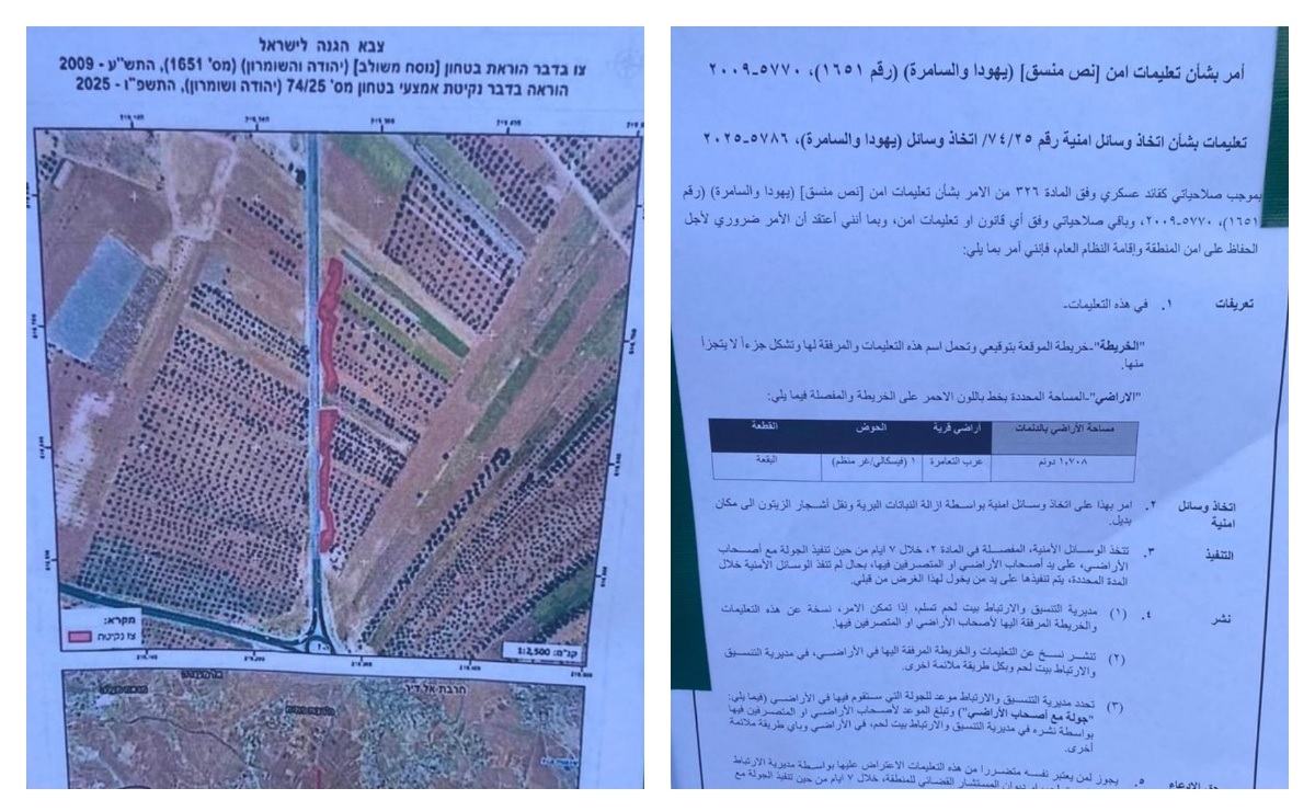 شفا – أخطرت قوات الاحتلال الإسرائيلي، اليوم الجمعة، بإزالة مئات أشجار الزيتون من أراضي بلدة تقوع جنوب شرق بيت لحم.