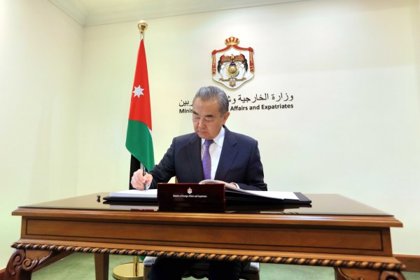 وقال وانغ إن الأردن يمثل قوة استقرار في الشرق الأوسط، ويؤدي دورا إيجابيا وبنّاءً في القضايا الساخنة كالقضية الفلسطينية، مشيرا إلى أن الصين على استعداد لتعزيز التواصل والتنسيق مع الأردن من أجل الحفاظ معًا على السلام والاستقرار والتنمية في المنطقة.