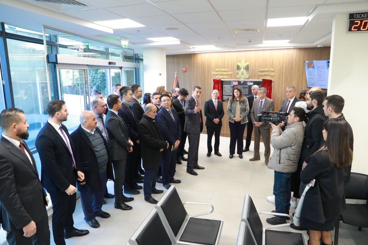 شفا – افتتحت وزيرة الخارجية والمغتربين د. فارسين أغابكيان شاهين ، اليوم الاثنين، إدارة الشؤون القنصلية وقاعة التصديقات في مقر الوزارة، وذلك بمشاركة وزير الأشغال العامة والإسكان المهندس عاهد بسيسو، وسفير جمهورية الصين الشعبية المعتمد لدى دولة فلسطين السيد تسنغ جيشن، حيث تم تنفيذ مشروع التطوير وإعادة التأهيل بدعمٍ كامل من جمهورية الصين الشعبية.
