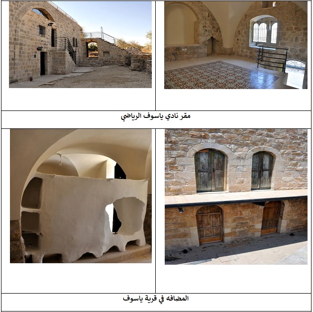 تم ترميم نادي ياسوف الرياضي في كانون الثاني 2011، وهو مجموعة بيوت قديمة كانت سكنية، بمساحة بناء بلغت 390 م² وساحة بمساحة 125 م²، وأُعيد استخدامها مقرًا للنادي، كما جرى ترميم مضافة ياسوف في أيلول 2011، وهي بيت قديم بمساحة بناء 130 م² وساحة 110 م²، وأُعيد استخدامها كمضافة عامة، قبل أن يتحول المبنى في نهاية عام 2017 إلى مقهى يخدم أبناء البلدة وزوارها.