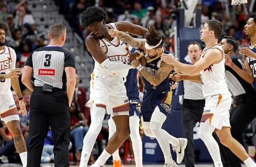 شفا – تعرض الثنائي مارك ويليامز لاعب الارتكاز في فينيكس صنز، وخوسيه ألفارادو صانع ألعاب نيو أورلينز بيليكانز للطرد بعد دخولهما في شجار عنيف.
