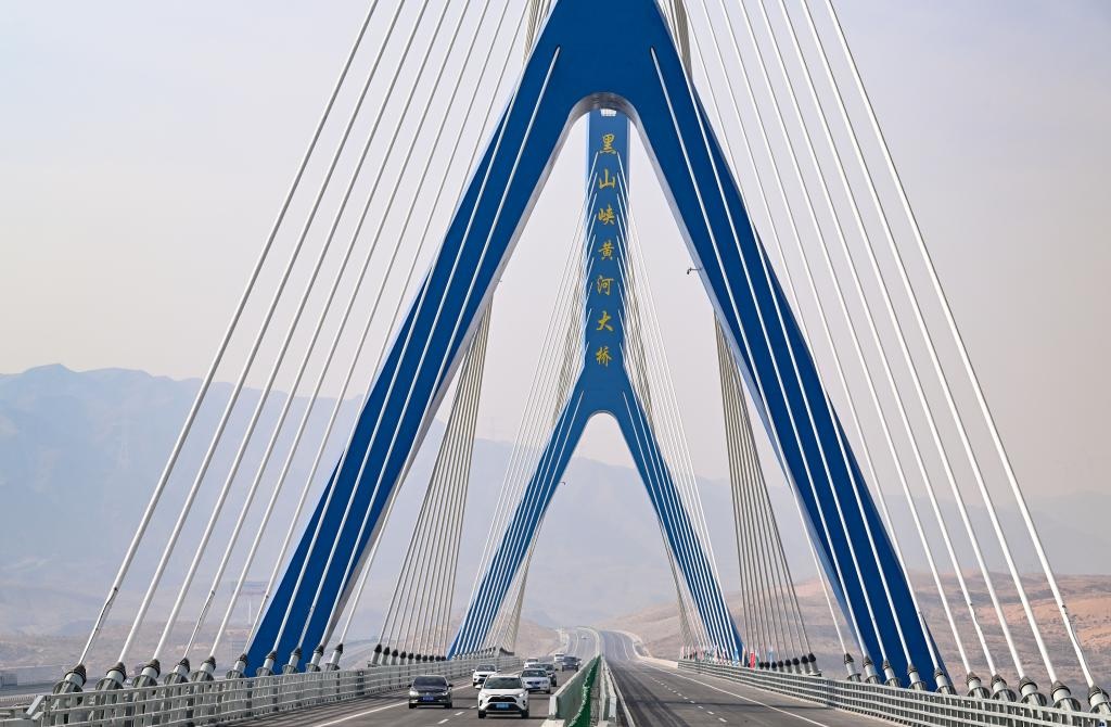 شفا – تشونغوي 31 ديسمبر 2025 (شينخوا) في الصورة الملتقطة يوم 30 ديسمبر 2025، جانب من جسر هيشانشيا الضخم الممتد على النهر الأصفر في مدينة تشونغوي بمنطقة نينغشيا الذاتية الحكم لقومية هوي في شمال غربي الصين، حيث تم تشغيل الجسر الضخم يوم الثلاثاء الماضي، بطول إجمالي يبلغ 1539 مترا.