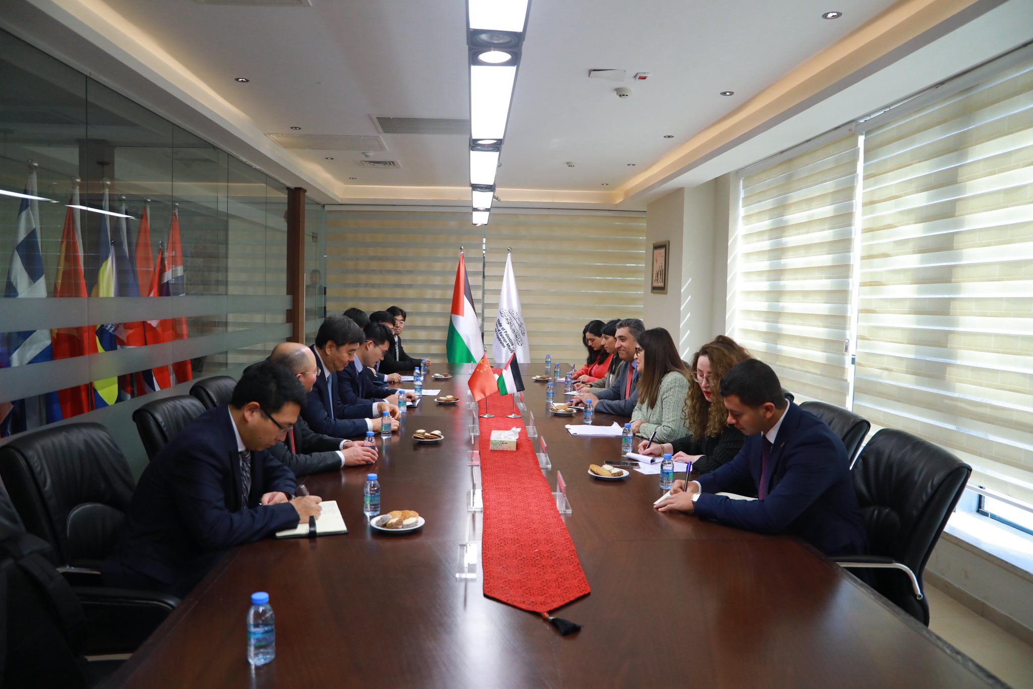 من جهته، أكد المبعوث الصيني السيد تشاي جيون على عمق العلاقة التاريخية التي تربط فلسطين والصين وامتدادها نحو المستقبل مع ازدياد الثقة المتبادلة السياسية بين الحكومتين والصداقة التاريخية بين الشعبين. وأشاد بدعم دولة فلسطين لجمهورية الصين وأكد على موقف بلاده الثابت في دعم القضية الفلسطينية ومبدأ حل الدولتين ونيل فلسطين العضوية الكاملة في الأمم المتحدة ودعم فلسطين في مسار المساءلة للاحتلال على جرائمه. كما أكد على استمرار بلاده بتقديم الدعم لدولة فلسطين في مختلف المجالات التي تخدم فلسطين وشعبها حيث تم تنفيذ أكثر من 35 مشروع لدعم الشعب الفلسطيني.