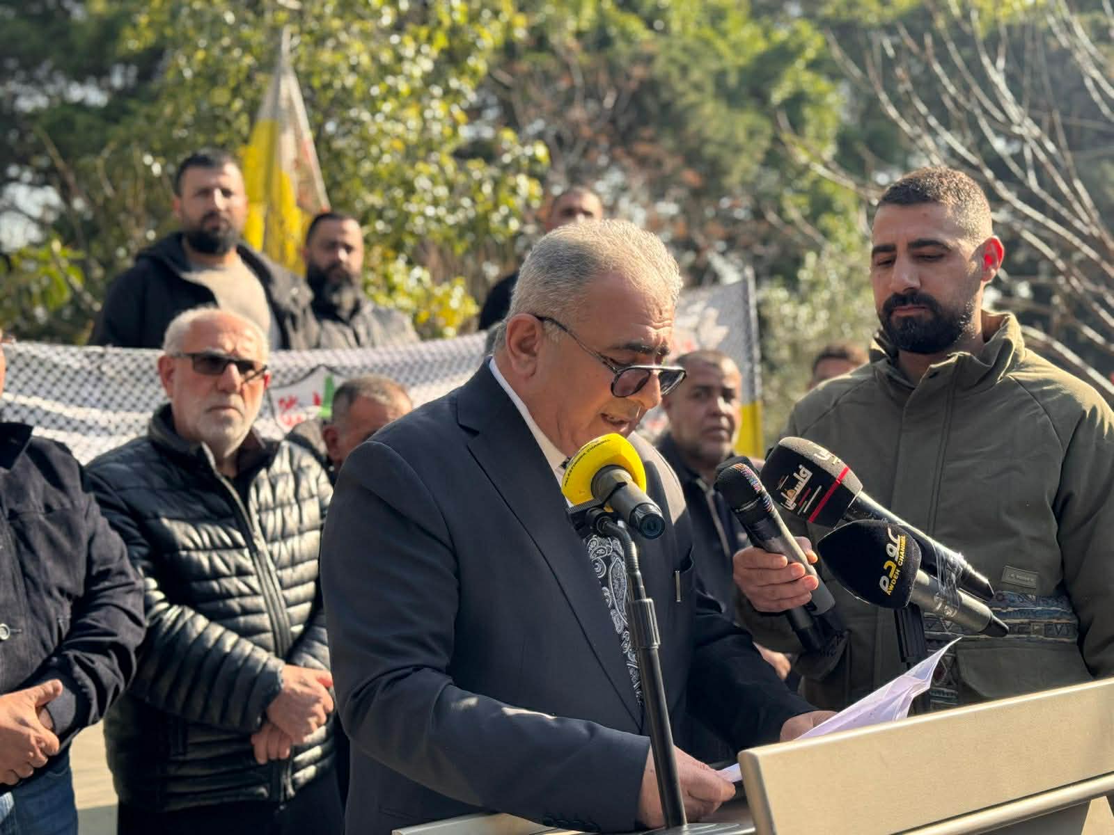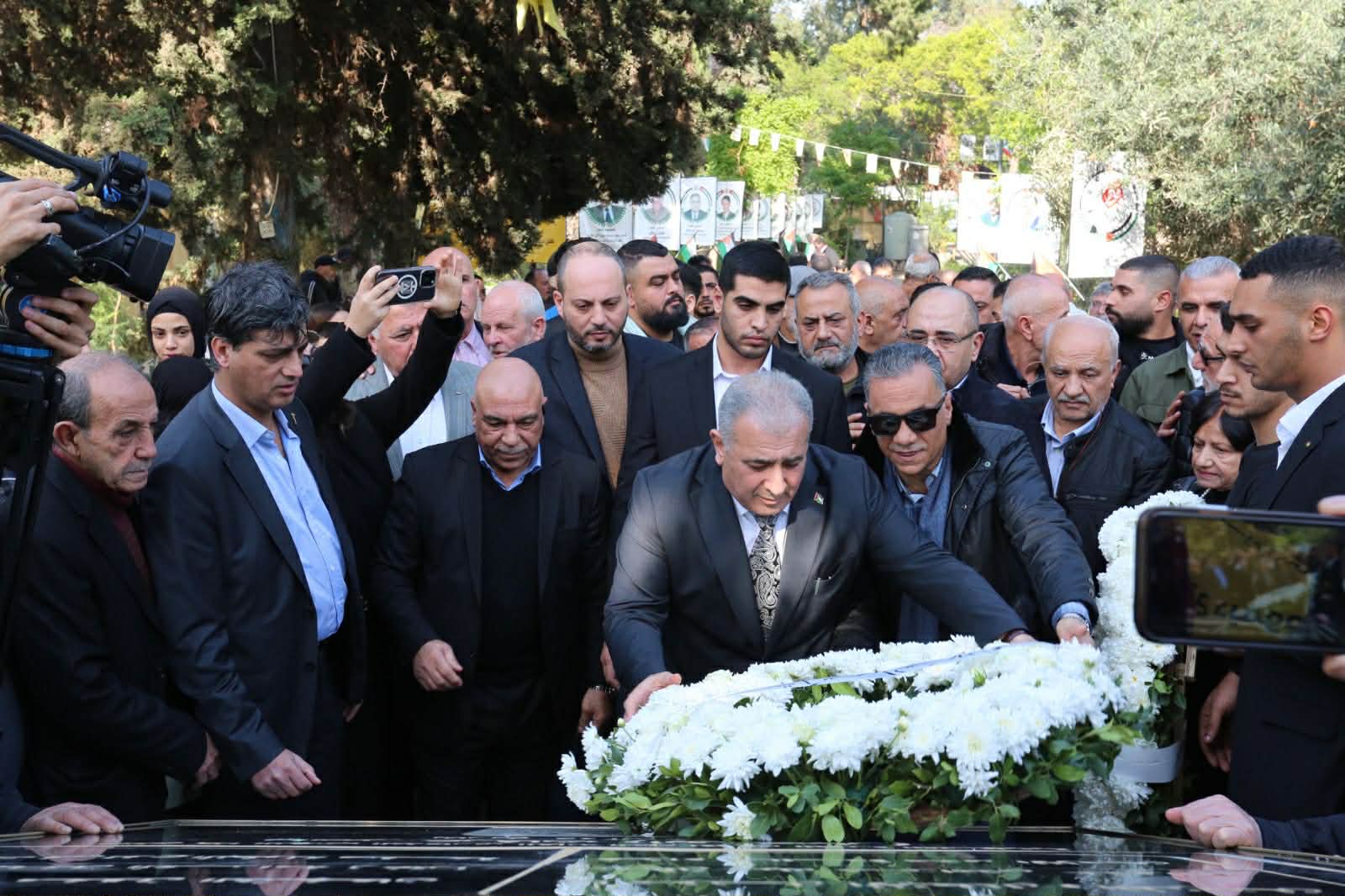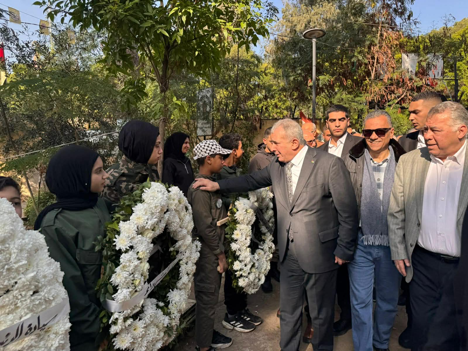 ووضع المشاركون اكاليل من الزهور على النصب التذكاري باسم السفير محمد الاسعد، وحركة فتح ومؤسسة رعاية اسر الشهداء والجرحى.