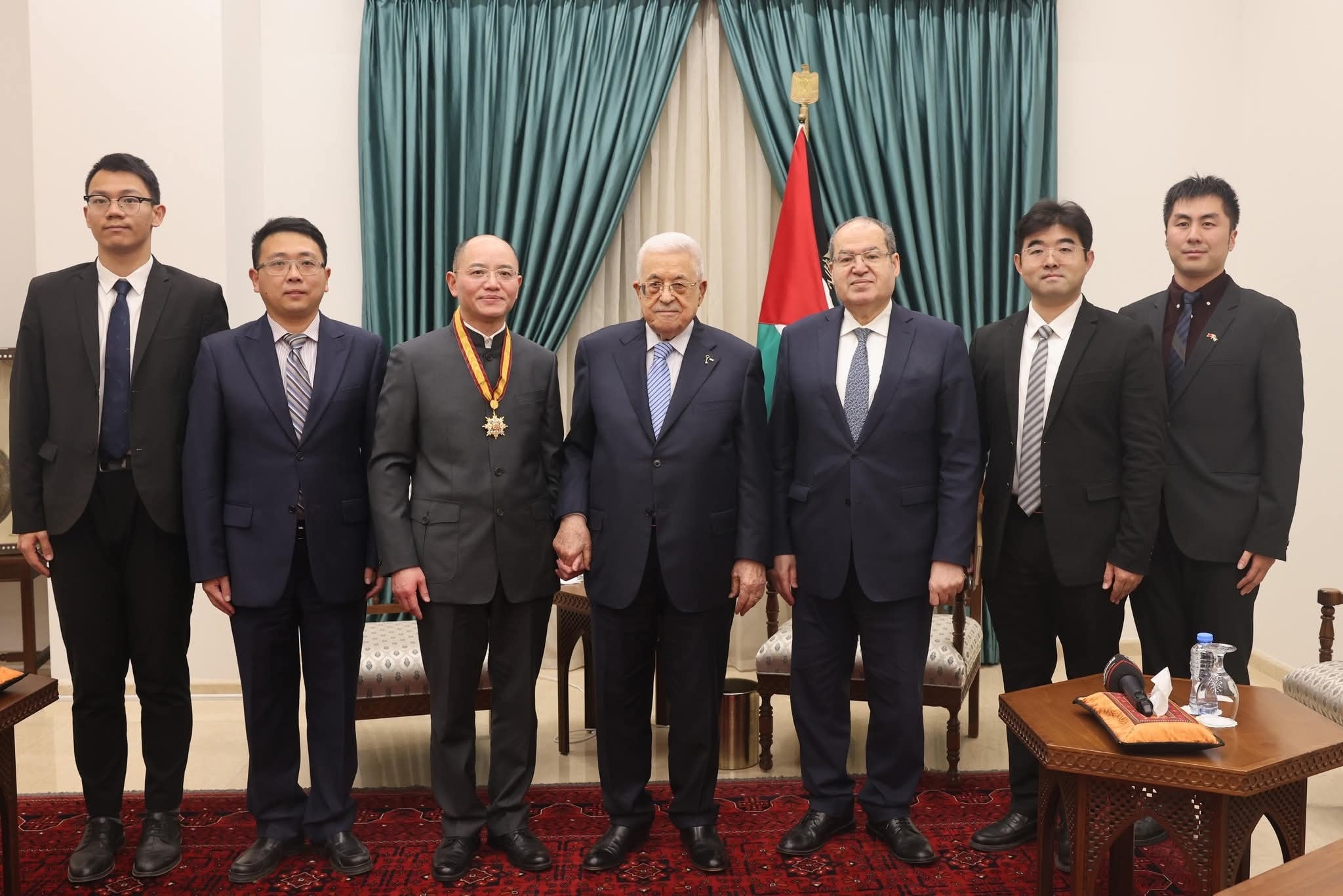 ومنح الرئيس محمود عباس، رئيس مكتب تمثيل جمهورية الصين الشعبية السفير تسنغ جيشين ، وسام “نجمة الصداقة”، تقديرا لدوره المتميز في تعزيز علاقات الصداقة والتعاون بين دولة فلسطين وجمهورية الصين الشعبية، وتثمينا لجهوده في دعم الشعب الفلسطيني ونصرة قضيته العادلة لنيل حريته واستقلاله.