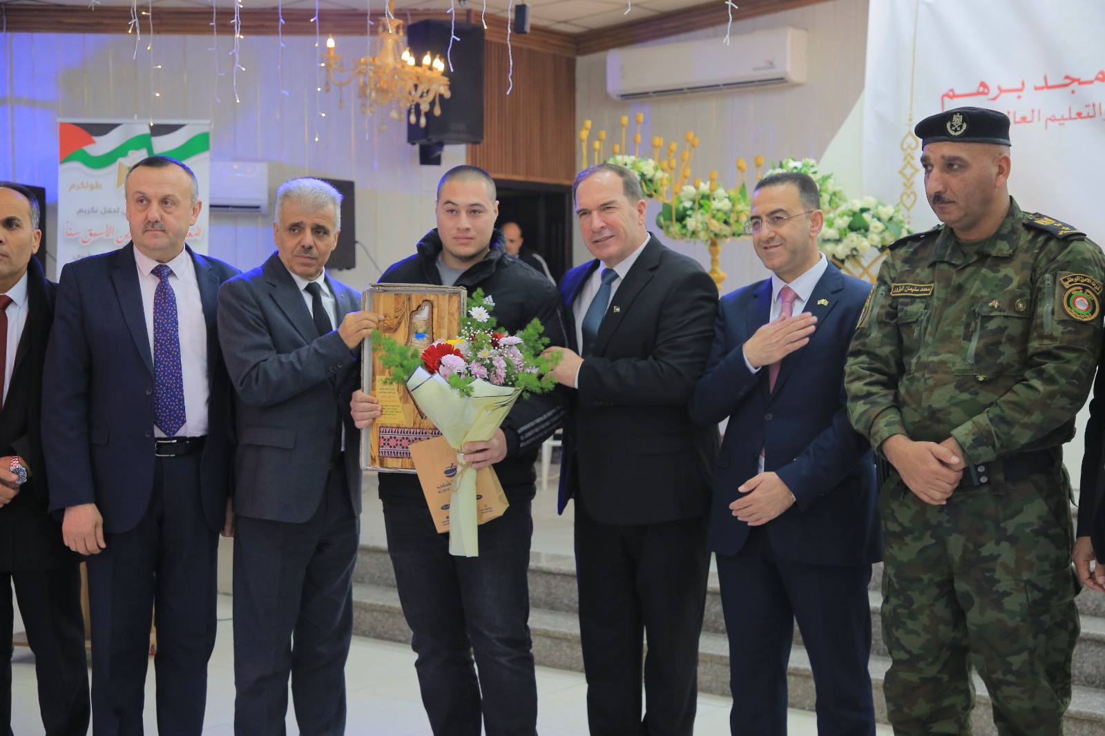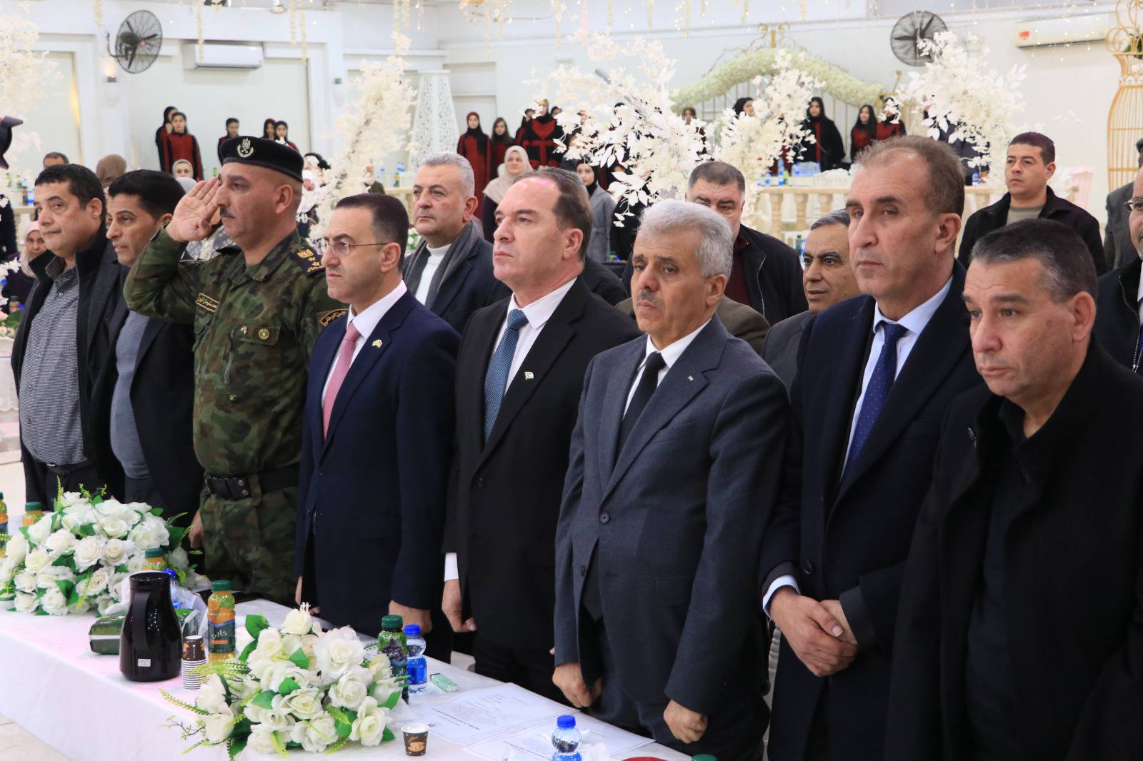 جاء التكريم بمشاركة قائد المنطقة العقيد محمد البزور ومديري الأجهزة الأمنية، و بحضور الأمين العام لاتحاد المعلمين سائد زريقات، والحاج غازي الحاج قاسم ممثلاً عن بلدية طولكرم، والغرفة التجارية، وممثلي المؤسسات الرسمية والأهلية، ورئيس جامعة فلسطين التقنية “خضوري” د. حسين شنك، وعصام القاسم امين سر مجلس أمناء جامعة خضوري إلى جانب ممثلي الجامعات، وجمعية رجال الأعمال، ومجلس أولياء الأمور الموحد، إضافة إلى الجهات المختصة و الداعمين من الشركات وأهل الخير.