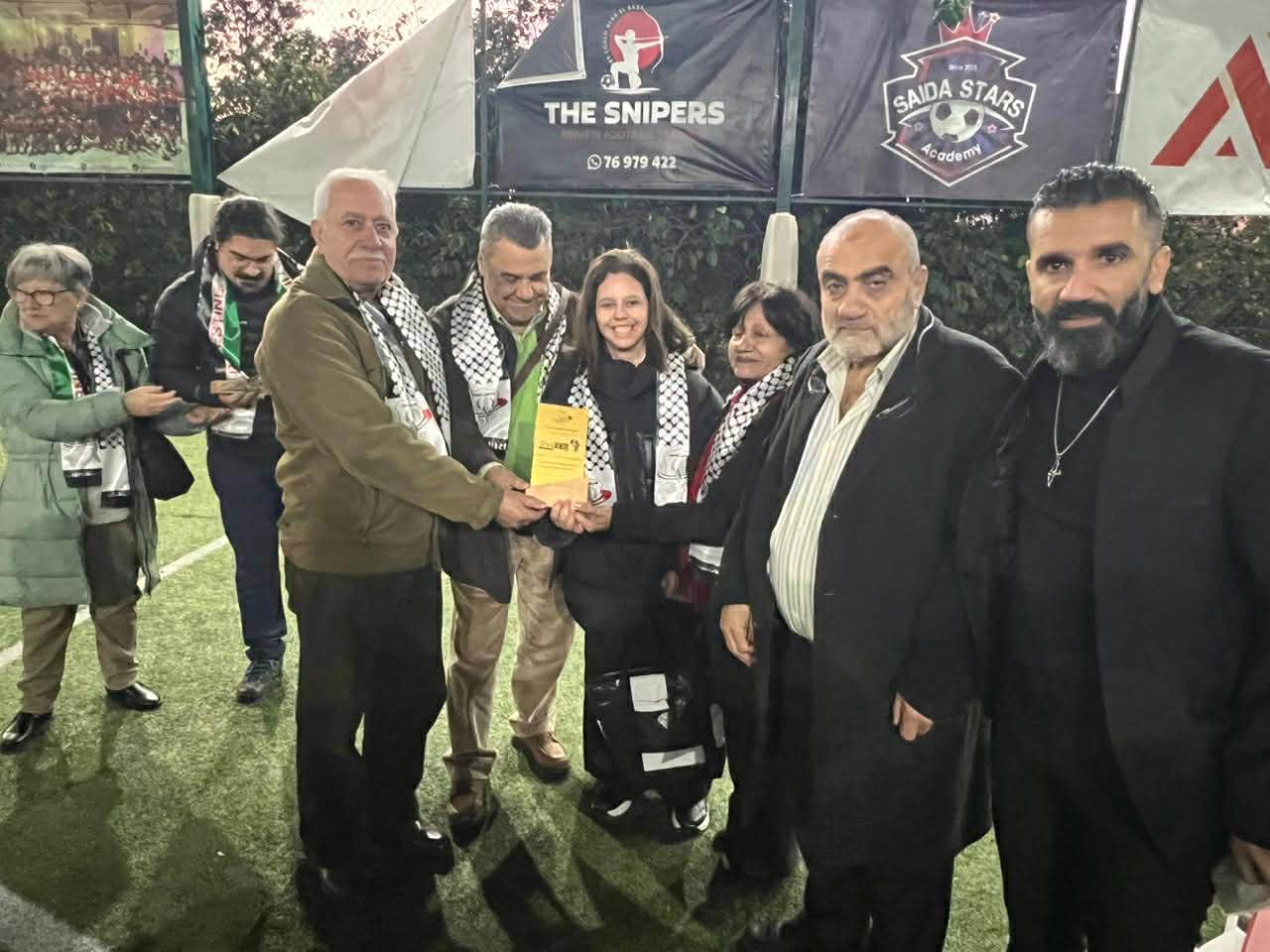 كما حضر مسؤول جمعية DENA DERU NGO السيد إبراهيم يوسف يرافقه والده السيد علي يوسف ووالدته السيدة أوبي، إلى جانب رئيس نادي فلسطين تجمعنا الحاج مفيد زيد، وأمين السر الحاج نمر اليوسف، ومدير النادي الكوتش محمد الصباغ، ومدرب الفريق الكابتن يامن سرية، والمدير التنفيذي في الاتحاد الفلسطيني لكرة القدم – فرع لبنان عفيف النسر ، إضافة إلى لاعبي الفريق الأول للنادي.