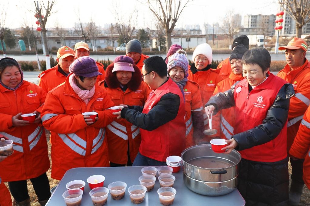 شفا – بكين 25 يناير 2026 (شينخوا) في الصورة الملتقطة يوم 24 يناير 2026، متطوعون يقومون بتوزيع حساء لابا المجاني على عمال الصرف الصحي في مدينة تانغشان في مقاطعة خبي بشمالي الصين. وأقيمت فعاليات متنوعة في جميع أنحاء البلاد للترحيب بمهرجان لابا القادم الذي يصادف 26 يناير من العام الجاري.