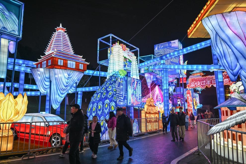 شفا – تشونغتشينغ أول فبراير 2026 (شينخوا) في الصورة الملتقطة يوم 30 يناير 2026، أناس يزورون مهرجان الفوانيس في حديقة معرض البستنة في بلدية تشونغتشينغ بجنوب غربي الصين.