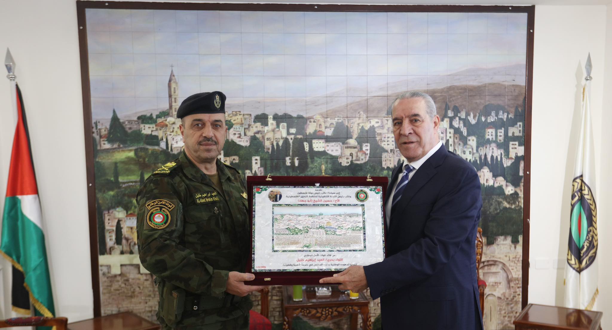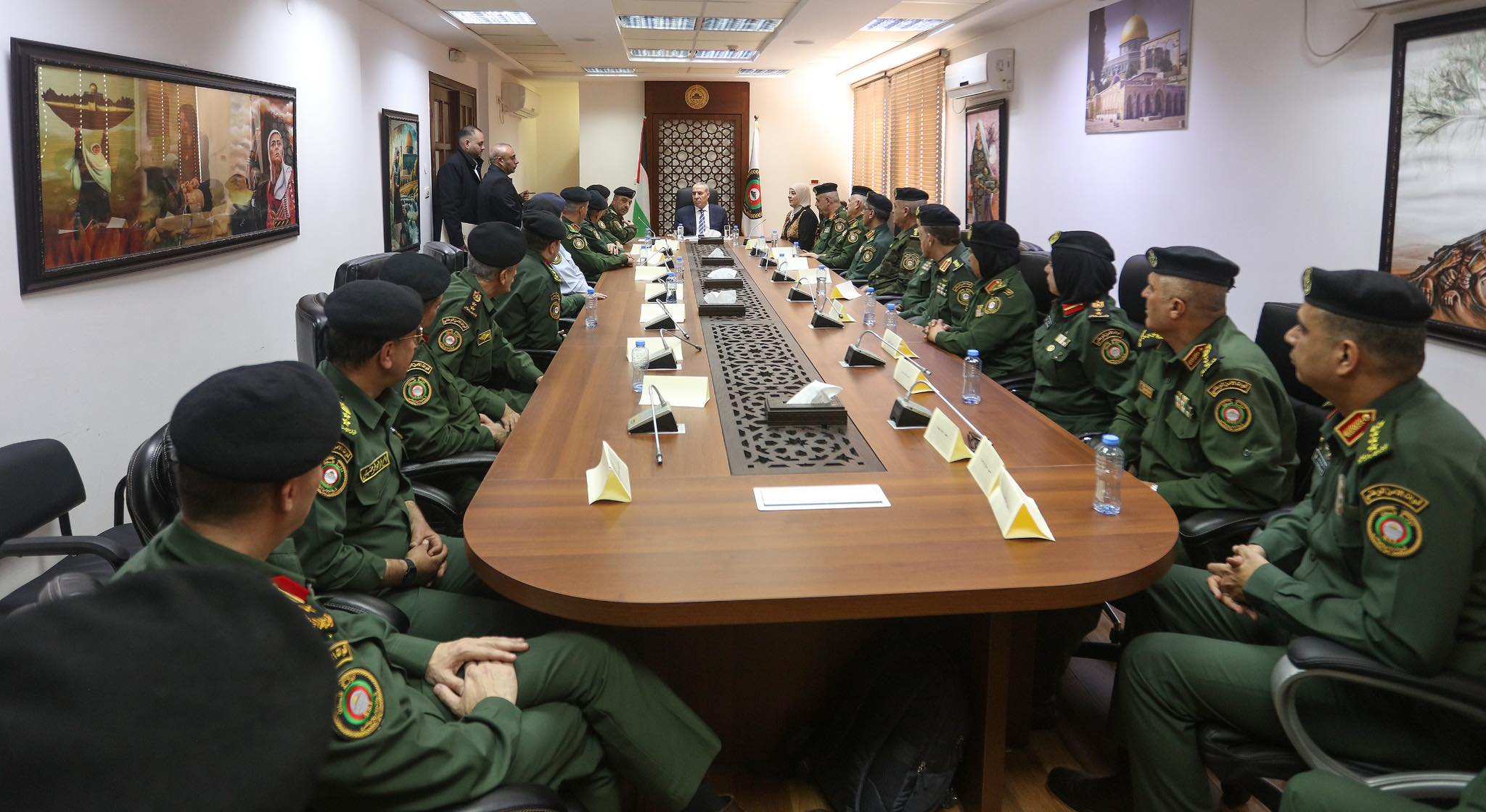 وكان في استقبال سيادته قائد قوات الأمن الوطني الفلسطيني اللواء العبد إبراهيم خليل، حيث عقد لقاءً رسمياً بحضور عدد من كبار ضباط القوات، جرى خلاله بحث مجمل القضايا المتعلقة بسير العمل الأمني، ومستوى الجاهزية، والخطط الرامية إلى تطوير أداء المؤسسة الأمنية الوطنية بما ينسجم مع متطلبات المرحلة الراهنة.