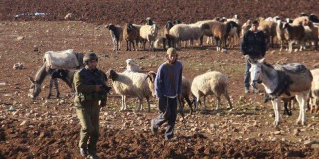 شفا – رعى مستوطنون، اليوم السبت، أغنامهم في سهل قرية المغير شرق رام الله.