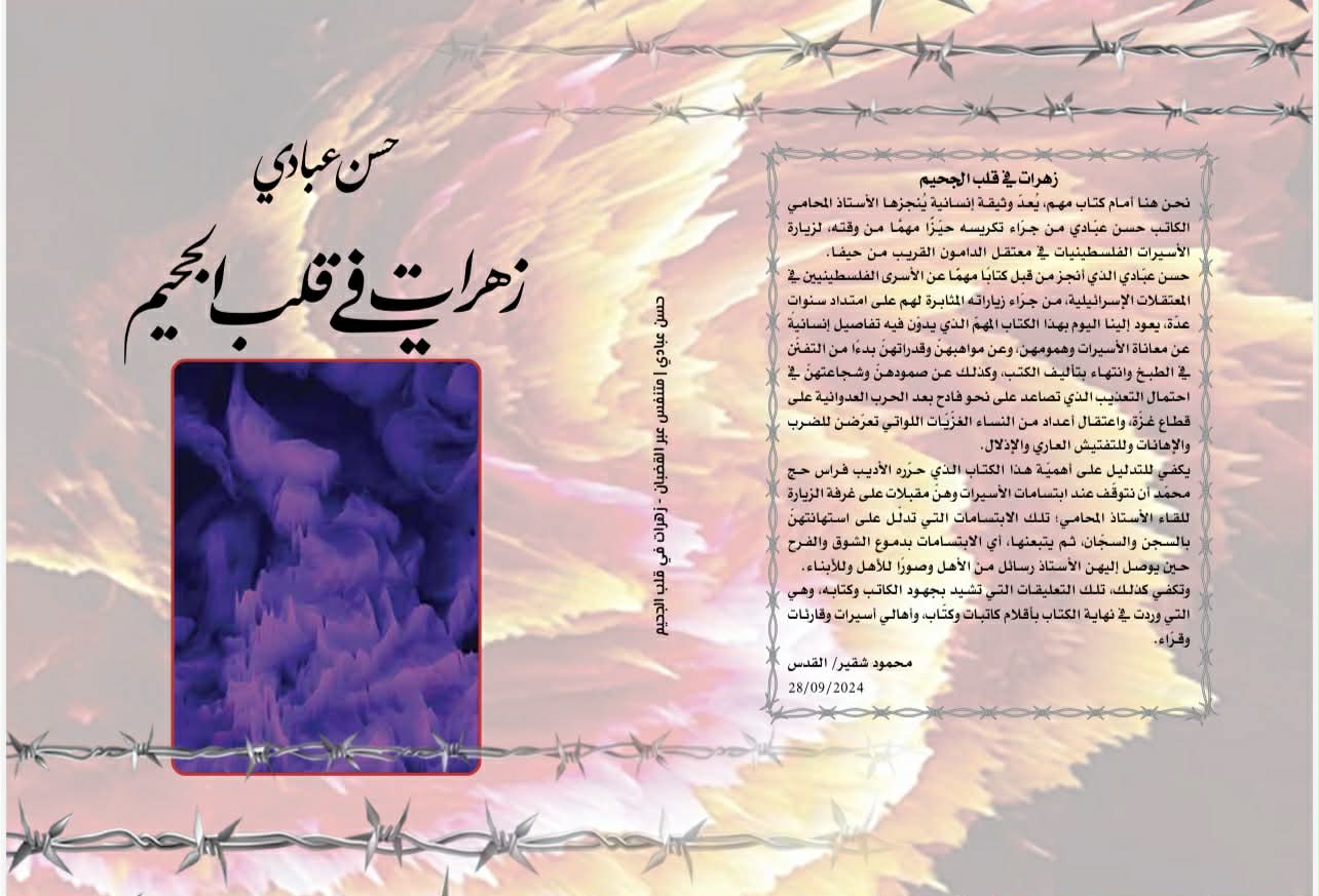 من جانبها، قدّمت الدكتورة والناقدة منى أبو حمدية قراءة نقدية معمقة للكتاب، سلطت خلالها الضوء على جوهر العمل المتمثل في أنسنة قضية الأسيرات الفلسطينيات. وأكدت أن الكتاب نجح في تقديم الأسيرة الفلسطينية كإنسانة لها حكاية وتجربة ومعاناة، وليس مجرد رقم في سجلات الاعتقال. كما أوضحت ابو حمدية أن الكاتب استطاع المزج بمهارة بين التوثيق والسرد الإنساني، ليقدّم نصًا أدبيًا يجمع بين القيمة المعرفية والبعد الوجداني، ويساهم في ترسيخ الذاكرة الوطنية وصون الرواية الفلسطينية من محاولات التغييب.