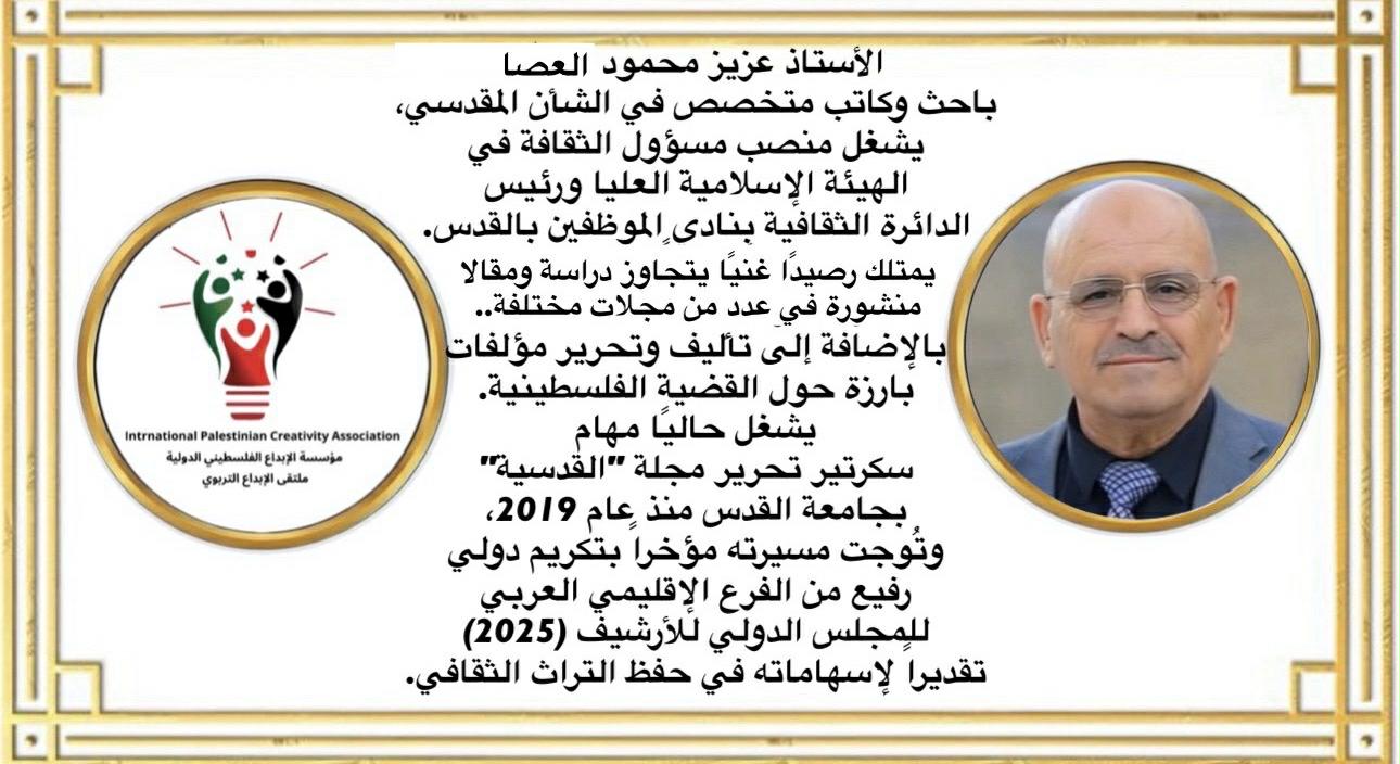 • عزيز العصا : باحث وكاتب مقدسي متخصص في تاريخ القدس وشؤونها المجتمعية، مهتم بقراءة التحولات التي تمس الهوية والسردية الثقافية.