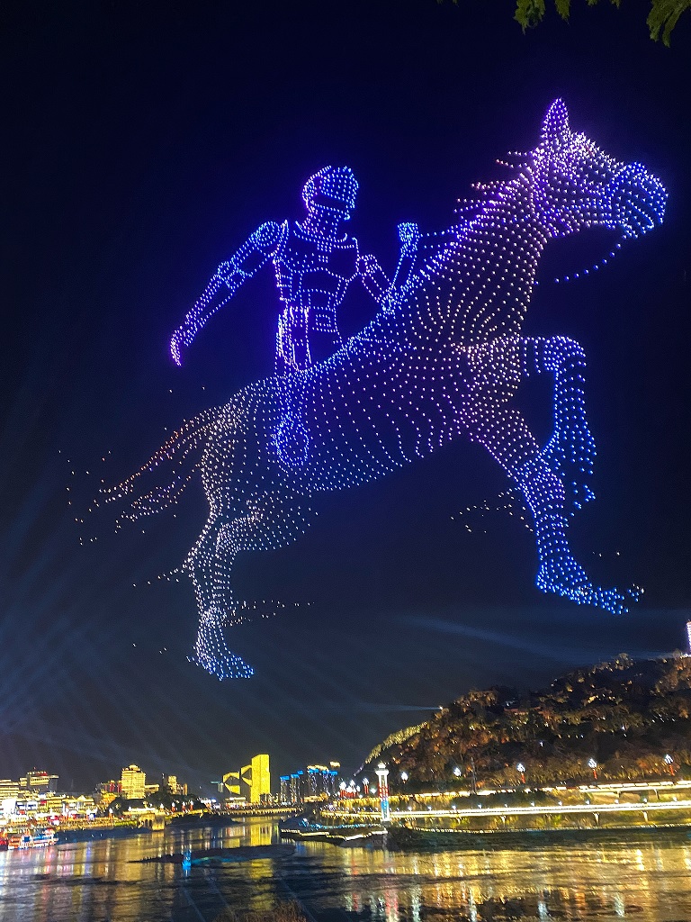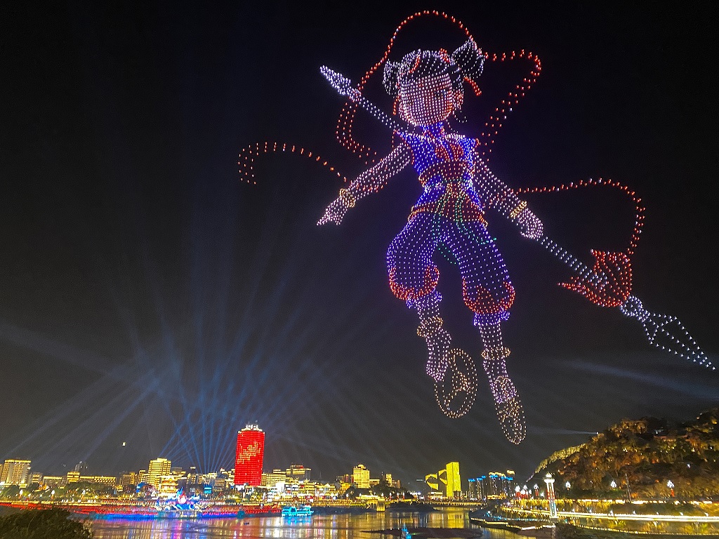 تحوّلت 5000 طائرة مسيرة إلى أشكال مستوحاة من ييبين، مثل شعرية ييبين، والبطل الشاب نهتشا، والباندا العملاقة. امتزجت التقنية مع مناظر النهر الخلابة، لتقدم مشهداً بصرياً مذهلاً للمواطنين والسياح.