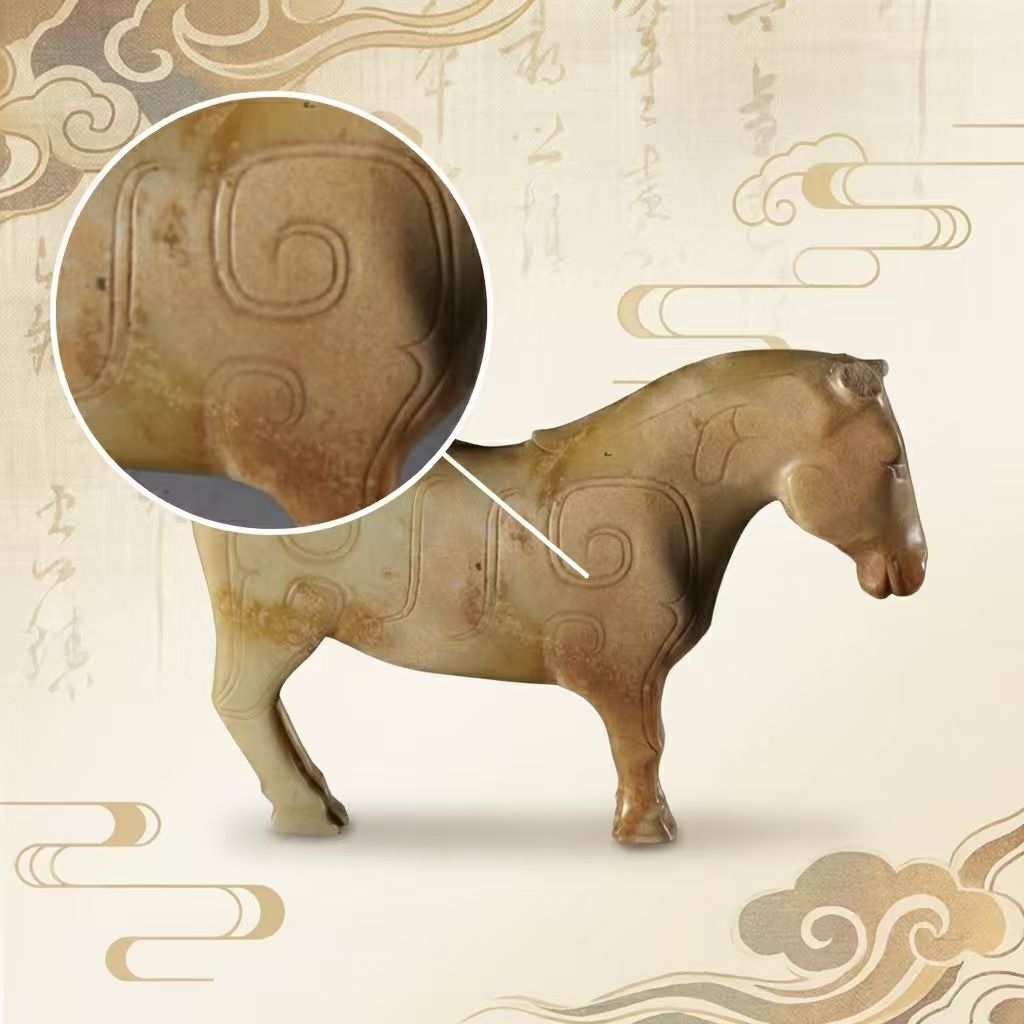 شفا – يعود هذا الحصان المصنوع من اليشم إلى عهد تشو الغربية في الصين قبل نحو ثلاثة آلاف سنة. نُحت من قطعة واحدة بأسلوب نحت ثلاثي الأبعاد يسمح بمشاهدته من جميع الزوايا. نِسَب هذا الحصان قريبة جدا من التشريح الحقيقي. ويُعد عصر تشو الغربية مرحلة مهمة في تطور فن نحت اليشم، حيث ازداد خلاله صنع التماثيل الحيوانية المجسمة.