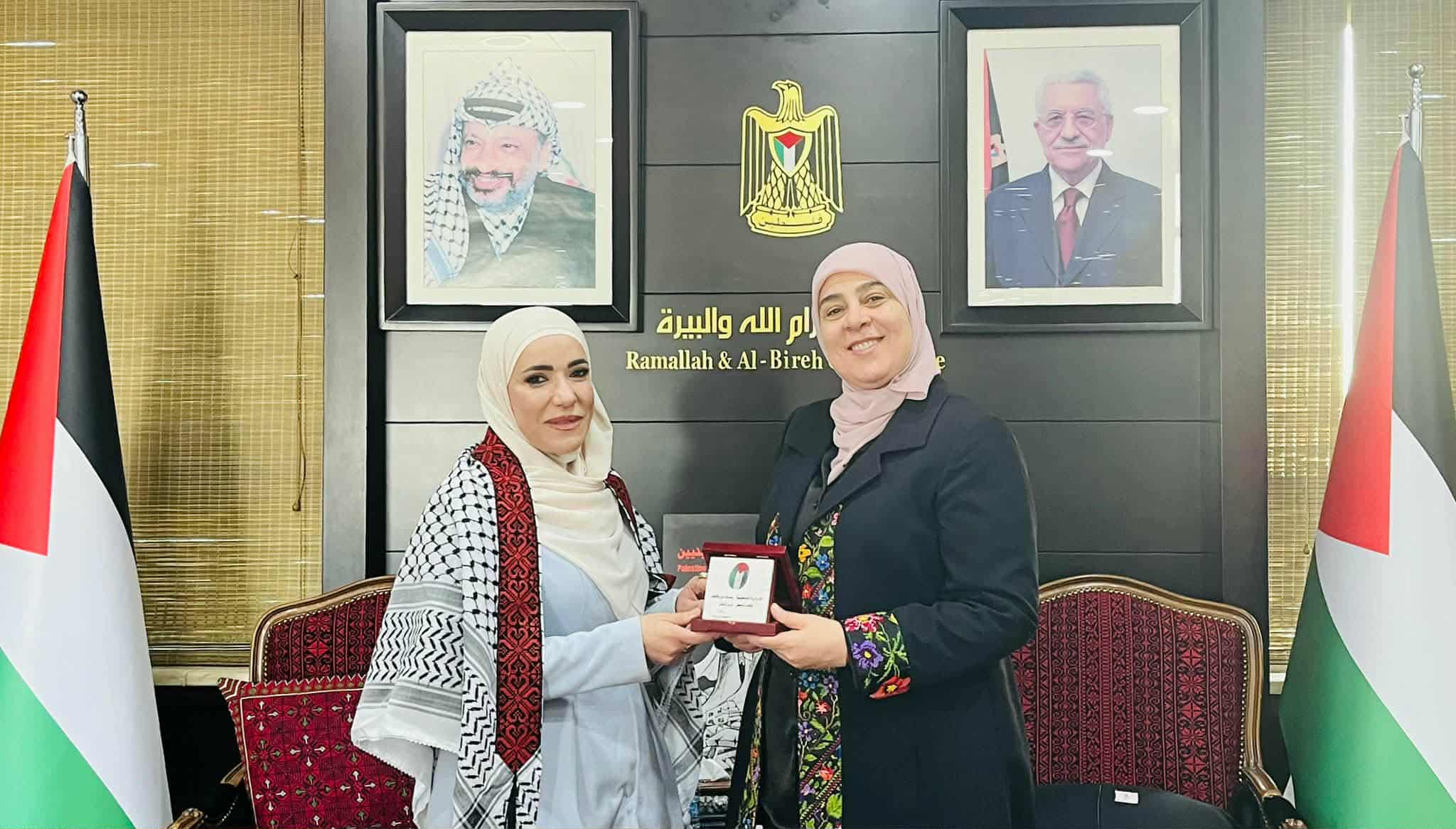 وخلال اللقاء، تشرفت المحافظة بتسلّم نسخة من كتاب بصمات في الحياة للدكتورة بشارات، وهو عمل أدبي عميق يُعيد للكلمة هيبتها، ويجعل منها رسالة أخلاقية ومعرفية تُسهم في بناء الوعي الفردي والجماعي. واختُتم اللقاء بتكريم الدكتورة بشارات بالكوفية الفلسطينية ودرع “البصمة الفلسطينية”، في لفتة وفاء وتقدير لعطائها الإبداعي وإسهامها الثقافي الذي يشكّل بصمةً مضيئة في سجل الثقافة الفلسطينية.