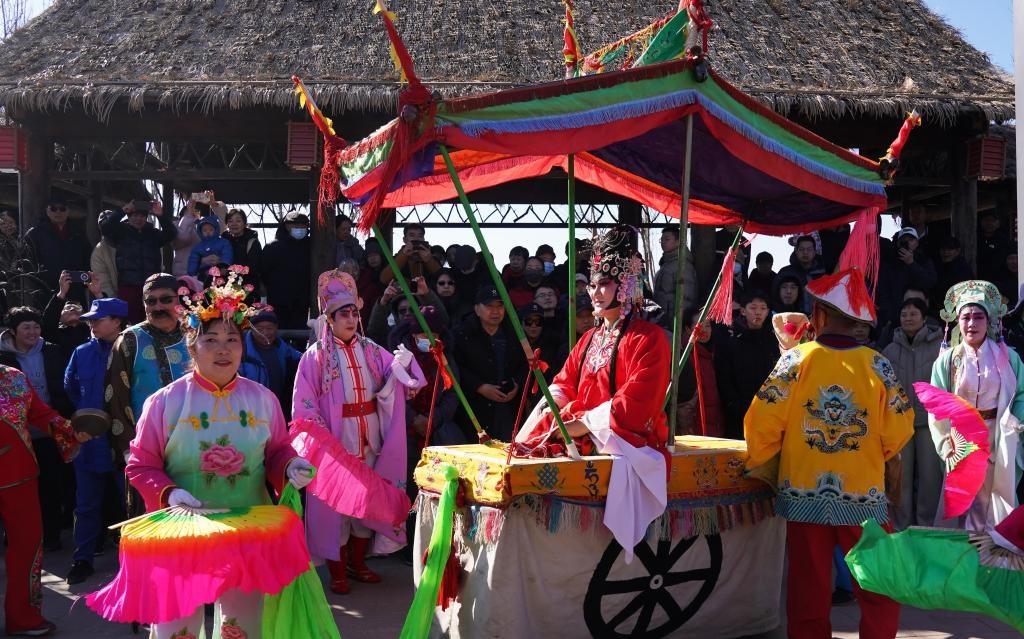 شفا – بكين 18 فبراير 2026 (شينخوا) في الصورة الملتقطة يوم 17 فبراير 2026، فنانون يقدمون عرضا فنيا في أحد معارض المعابد في العاصمة الصينية بكين. وافتتحت معارض المعابد في بكين احتفالا بعيد الربيع، حيث تقدم للزوار العروض التقليدية والطعام اللذيذ.