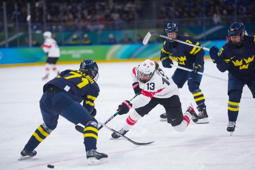 مباراة هوكي الجليد للسيدات بين سويسرا والسويد في أولمبياد ميلانو- كورتينا 2026