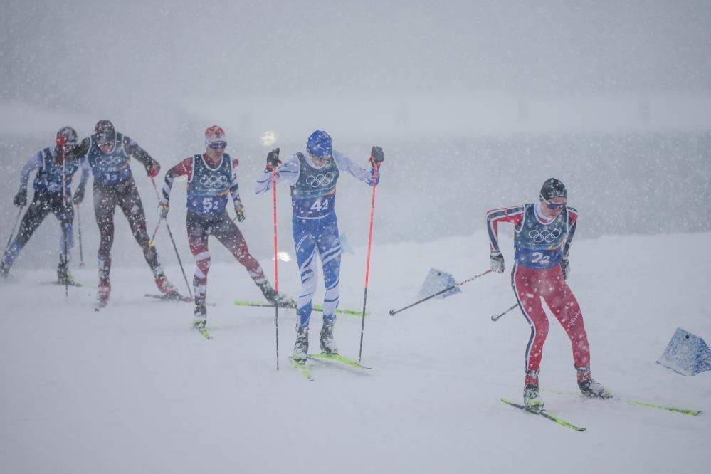 شفا – تيزيرو 19 فبراير 2026 (شينخوا) في الصورة الملتقطة يوم 19 فبراير 2026، لاعبون يتنافسون خلال سباق التزلج الريفي ضمن منافسات التزلج النوردي المزدوج، في دورة الألعاب الأولمبية الشتوية ميلانو-كورتينا 2026، في مدينة تيزيرو الإيطالية.