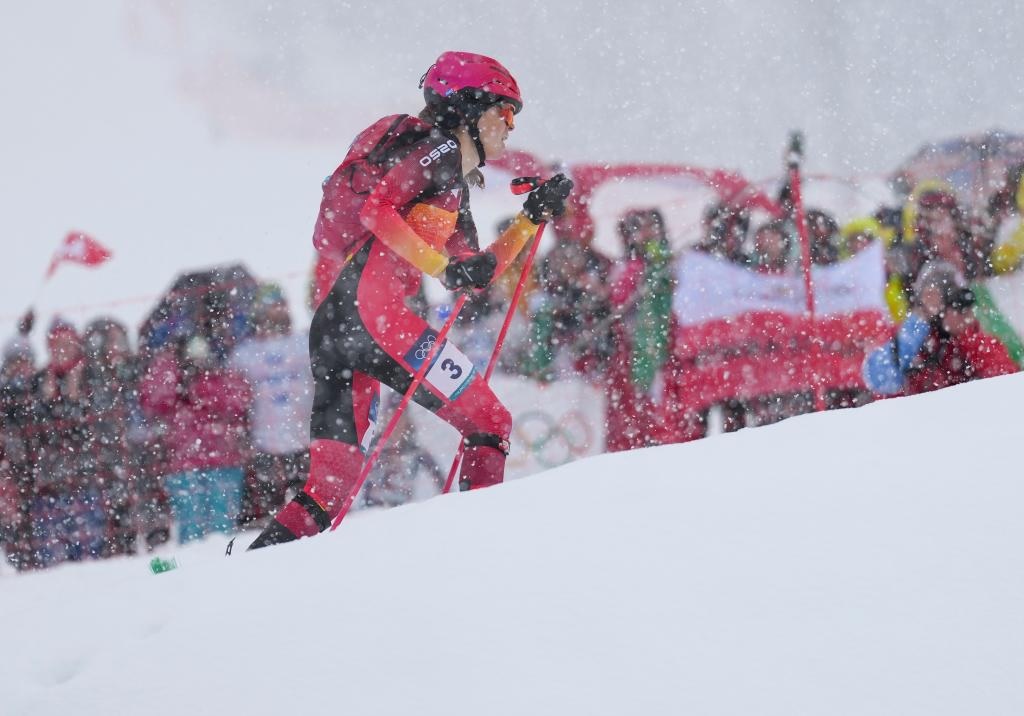 شفا – بورميو 19 فبراير 2026 (شينخوا) في الصورة الملتقطة يوم 19 فبراير 2026، الإسبانية آنا ألونسو رودريغيز، خلال مشاركتها في سباق التزلج الجبلي السريع للسيدات في دورة الألعاب الأولمبية الشتوية ميلانو-كورتينا 2026.