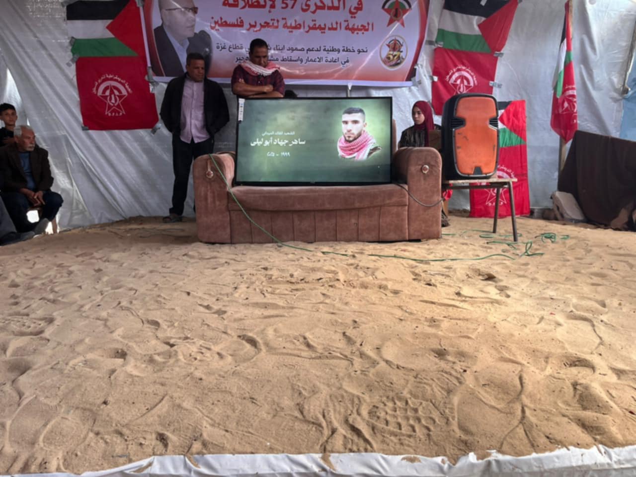 ومن جهته “هنأ الرفيق ابو حميد خلال كلمة الجبهة الرفاق والرفيقات بمناسبة الذكرى الـ57 لانطلاقة الجبهة الديمقراطية ناقلاً تحيات الرفيق الأمين العام فهد سليمان وأعضاء المكتب السياسي واللجنة المركزية لابناء شعبنا الفلسطيني في قطاع غزة ولأرواح شهدائنا وأسرانا الأبطال والجرحى البواسل وللمقاومة الفلسطينية الباسلة وفي القلب منها قوات الشهيد عمر القاسم معاهدين أن تبقى الجبهة الديمقراطية في مسار المقاومة والثبات على نهجها الوطني”.