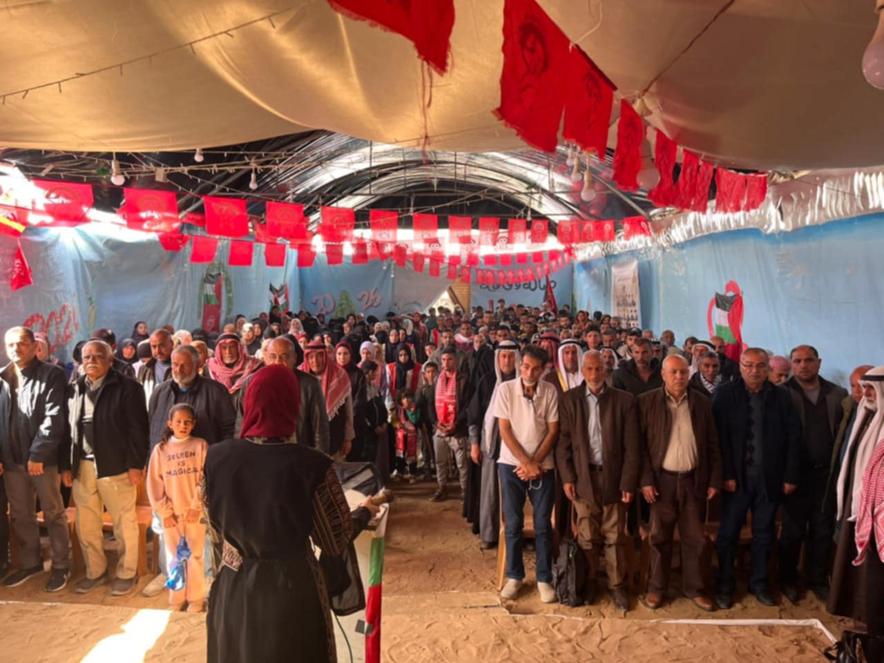 شفا – نظمت الجبهة الديمقراطية لتحرير فلسطين محافظة رفح احتفالاً حاشداً تحت شعار ” نحو خطة وطنية لتعزيز صمود أبناء شعبنا من خلال إعادة الإعمار ووقف مخططات التهجير” وذلك في قاعة ابو جبل بمنطقة المواصي جنوب قطاع غزة بحضور الرفيق صالح ناصر عضو المكتب السياسي وأمين اقليم قطاع غزة والرفيق ابو سالم معمر عضو المكتب السياسي و أعضاء اللجنة والقيادة المركزية وصف واسع من قيادات وكوادر الجبهة بمحافظة رفح وممثلي الفصائل والقوى الوطنية والإسلامية واللجنة الشعبية للاجئين مخيم رفح والوجهاء والمخاتير والاتحادات النسوية وشخصيات اعتبارية وذوي الشهداء والاسرى.