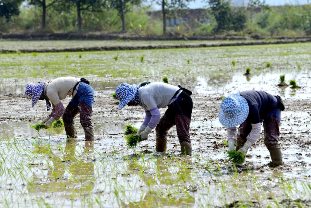شفا – بكين 26 فبراير 2026 (شينخوا) في الصورة الملتقطة يوم 23 فبراير 2026، مزارعون يعملون في حقل أرز في قرية مانلا، بمحافظة منغهاي في ولاية شيشوانغباننا ذاتية الحكم لقومية داي، بمقاطعة يوننان جنوب غربي الصين. عقب عطلة عيد الربيع، ينشغل المزارعون بالإنتاج الزراعي في الموسم الزراعي في أنحاء البلاد.
