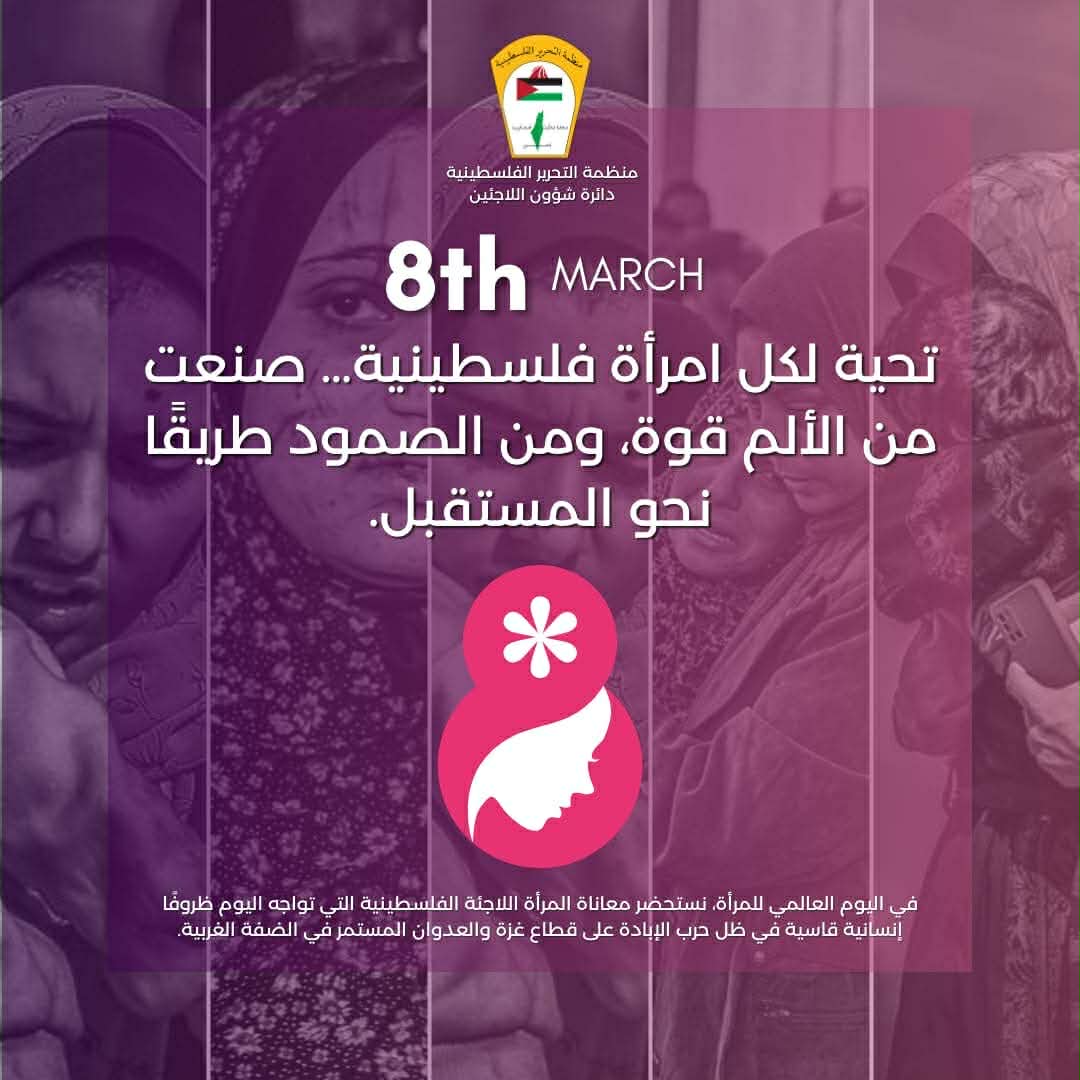 وجه التحية للمرأة الفلسطينية مؤكداً بأن منظمة التحرير الفلسطينية ستبقى وفيةً لعطاءاتها