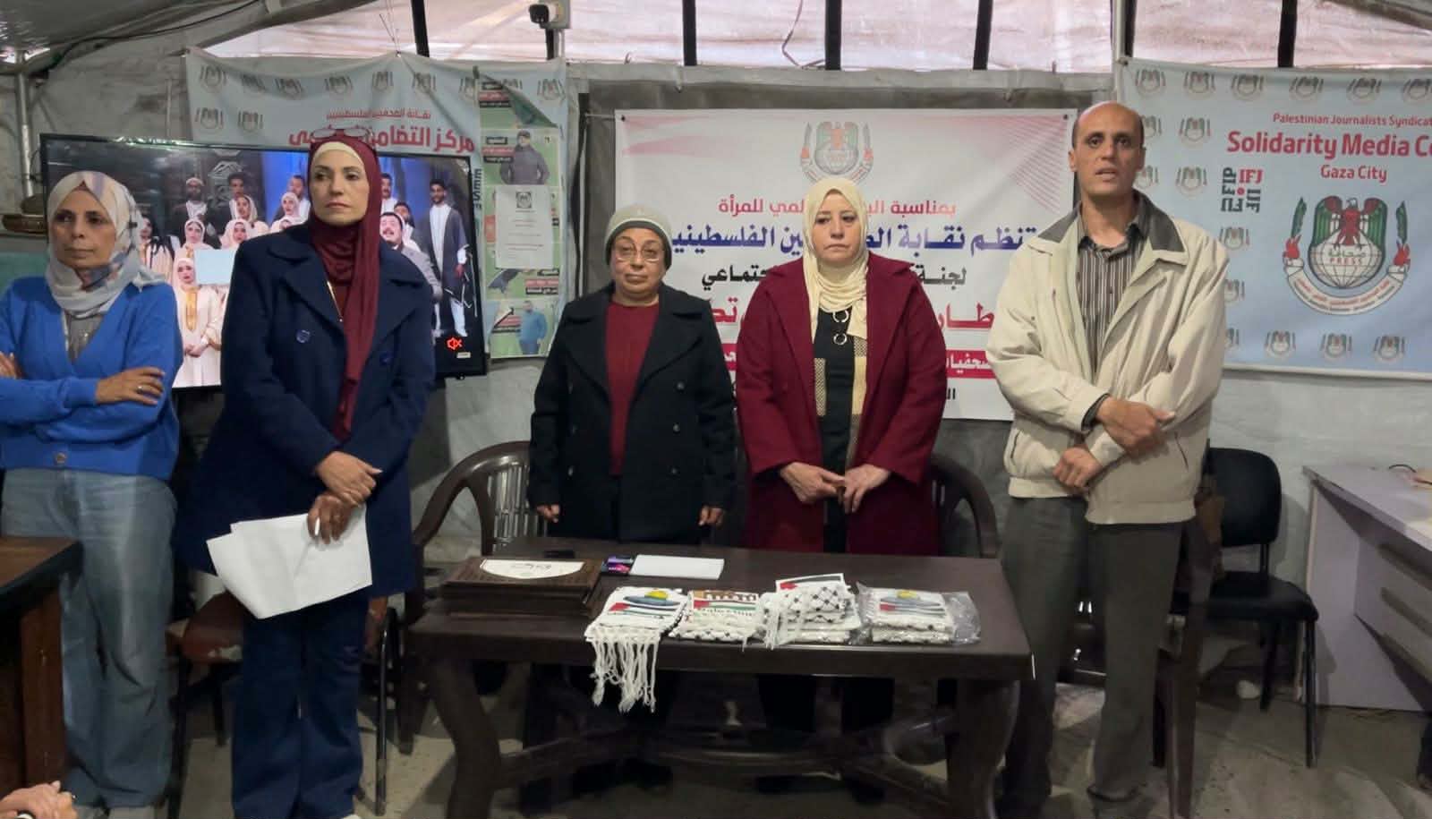 ووجهت الأستاذة نهى البحيصي مسؤولة الاتحاد العام للمرأة الفلسطينية في المحافظات الجنوبية التحية للصحفيات الفلسطينيات اللواتي قدمن التضحيات الكبيرة من أجل أن تظل التغطية مستمرة.