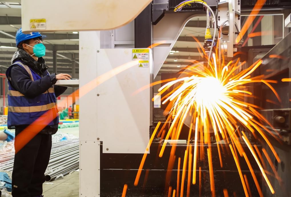شفا – بكين 17 مارس 2026 (شينخوا) في الصورة الملتقطة يوم 16 مارس 2026، عامل يقوم بتشغيل آلة في ورشة بمنطقة للتنمية الاقتصادية في مدينة جيويرونغ بمقاطعة جيانغسو شرقي الصين.