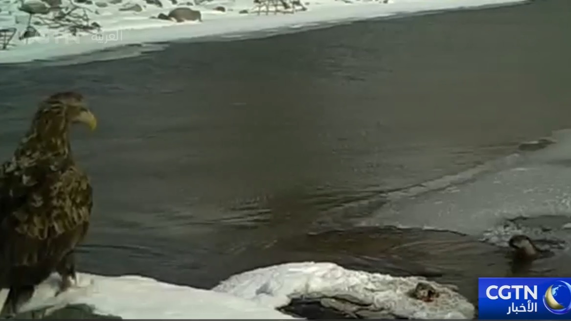 شفا – التقطت كاميرات الأشعة تحت الحمراء لحظة نادرة، حيث ظهر نسر أبيض الذيل وثعلب الماء الأوراسي على طول نهر في محافظة هاباخه، في منطقة شينجيانغ الويغورية الذاتية الحكم شمال غرب الصين. يقف النسر مترقبا على ضفة النهر بينما يسبح ثعلب الماء ويصطاد براحة، حيث يتعايش النوعان دون إزعاج. يقول الخبراء إن نظامهما الغذائي يخلق توازنا طبيعيا. حيث أصبحت بقايا الأسماك التي يتركها ثعلب الماء طعاما للنسر، ما يبرز نظاما بيئيا متناغما.