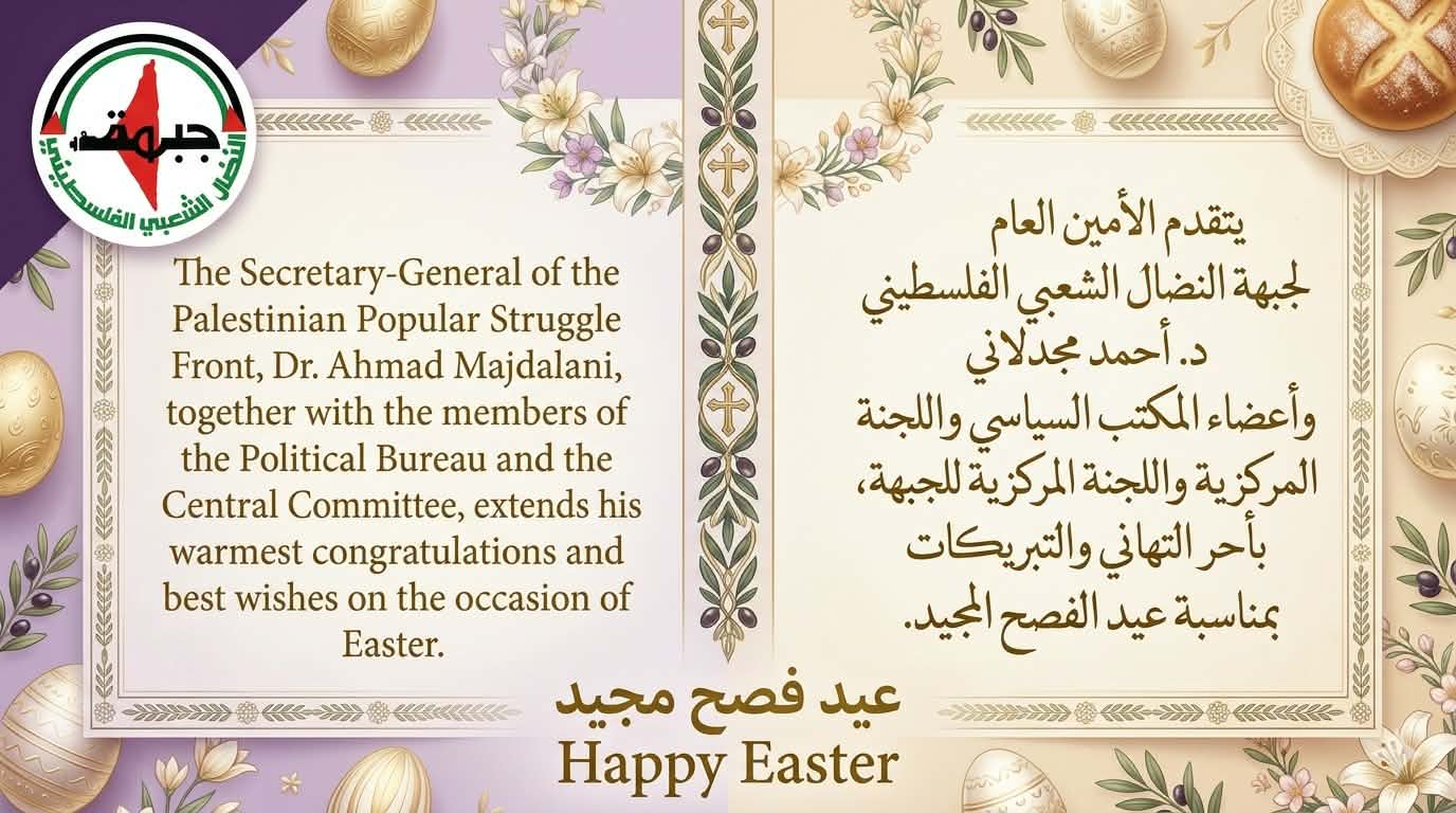 مجدلاني يهنئ شعبنا الفلسطيني لمناسبة عيد الفصح المجيد